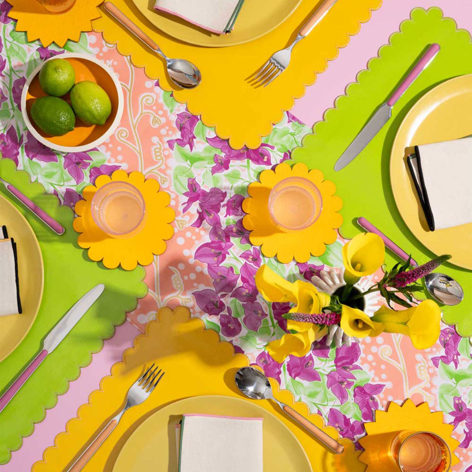 Spring / Summer 2024 Collection Add a touch of radiance to your next beverage break with our Sunburst Felt Cocktail Napkins. Laser-cut into beaming yellow shapes, these coasters shine beneath your glass, casting happy rays all day or night long. Crafted from 100% reclaimed wool, these multifunctional trivets are also the perfect base for floral creations. 4-piece felt cocktail napkin set Made in USA 100% premium reclaimed wool felt Size: 5" x 5" Spot treat as needed, do not bleach