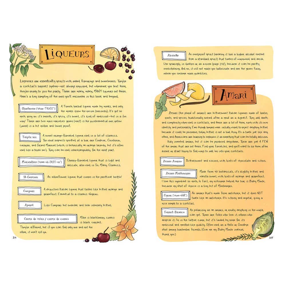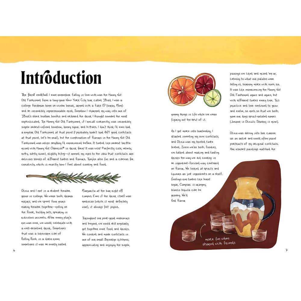 An artistic cocktail book that is as beautiful as it is practical. Sammi and Olivia have created a vibrant, knowledgeable mixology book for both seasoned and newbie drinkmakers. Cocktails in Color celebrates the craft of drinkmaking, from raw ingredients to finished, delightful refreshments. An accessible, visually delicious new guide to drinking that gives you the tools to design your own cocktails. Whether you're a seasoned pro or a new kid at the bar! Each page is fully illustrated with rich, inspiring gouache paintings, making it a visual delight that stands out from other bartender books. Fans of cocktail recipe books like The Art of Mixology or The Home Bartender who want a fresher, more aesthetically driven alternative will find exactly what they're looking in the stunning gouache illustrations on every page. Need bartender gifts? This is a must-have for cocktail enthusiasts everywhere. Hardcover book with printed laminated cover; 6 x 9 inches; 192 pages.