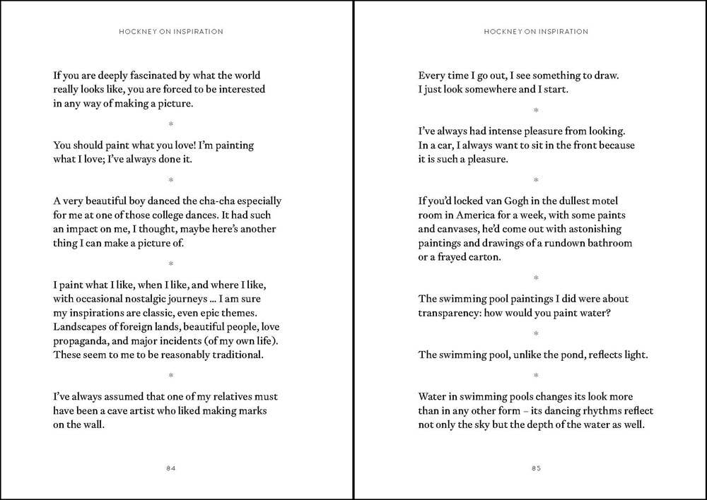 The World According to David Hockney by David Hockney I’ve always been a looker . . . that’s what artists do.This anthology of quotations by the artist David Hockney follows in the successful format of The World According to series. Ranging across topics including drawing, photography, nature, creativity, the Internet, and much more, The World According to David Hockney offers a delightful and engaging overview of the artist’s inimitable spirit, personality, and opinions.From everyday observations—"The eye is always moving; if it isn’t moving you are dead"—to artistic insights such as "painted color always will be better than printed color, because it is the pigment itself," as well as musings on other image makers, including Caravaggio, Paul Cézanne, and Walt Disney, David Hockney has a knack for capturing profound truths in pithy statements.