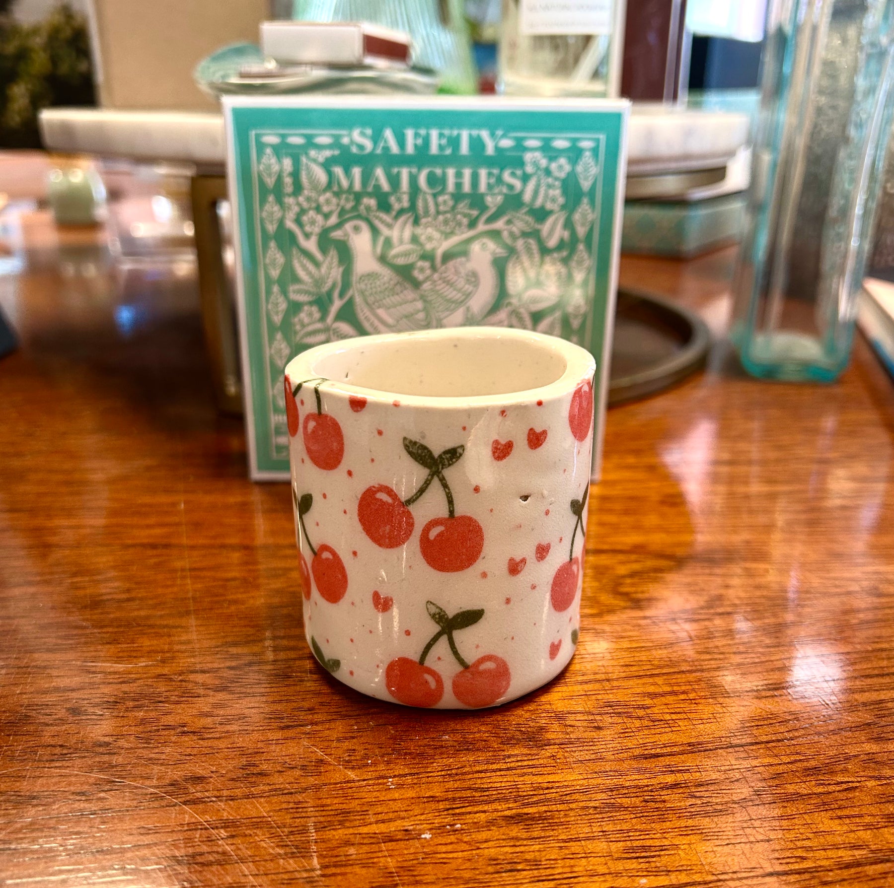 These handmade ceramic cups are the perfect addition to your kitchen or dining table. Each cup features unique graphics that will make your beverages even more enjoyable. Experience the quality and charm of these little cups for yourself.