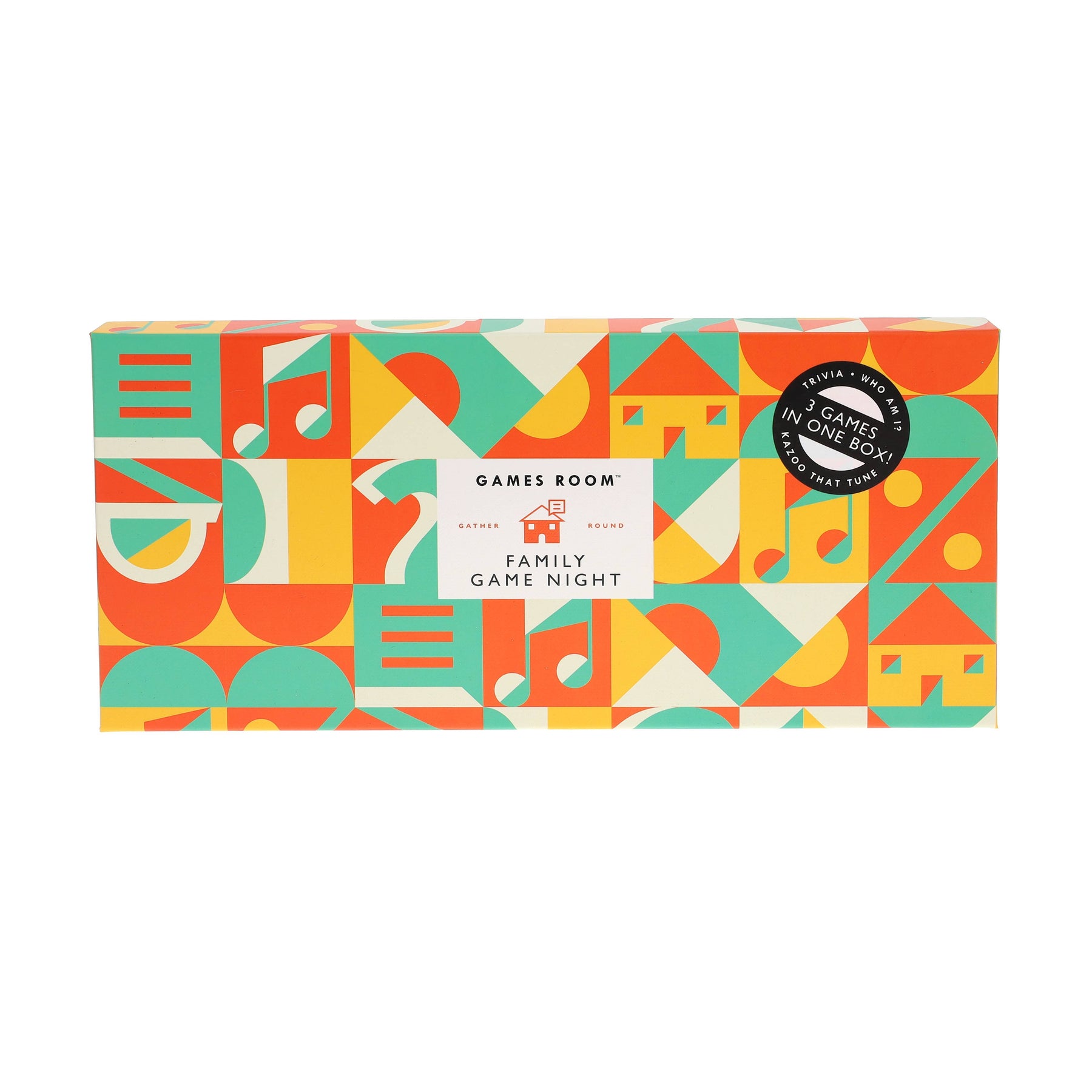 This interactive family game night set comes complete with three different games and accoutrements for the whole family to enjoy! This Games Room Family Game Night Gift Set has everything you need for a fun games night in. With three games in one that are easy to learn and quick to play, there's something for everyone. Gather friends and family and test everyone's general knowledge, kazoo skills and guessing abilities. Packaged in a beautiful, premium box with a stunning geometric design, it's dynamic enough to display proudly in any home, be it on the shelf or the coffee table. Games include: General Knowledge Trivia: Challenging trivia questions from pop culture to history Kazoo That Tune: Includes six plastic kazoos for ultimate music madness Who Am I?: Includes six pairs of cardholding glasses players can use to hold up their name cards