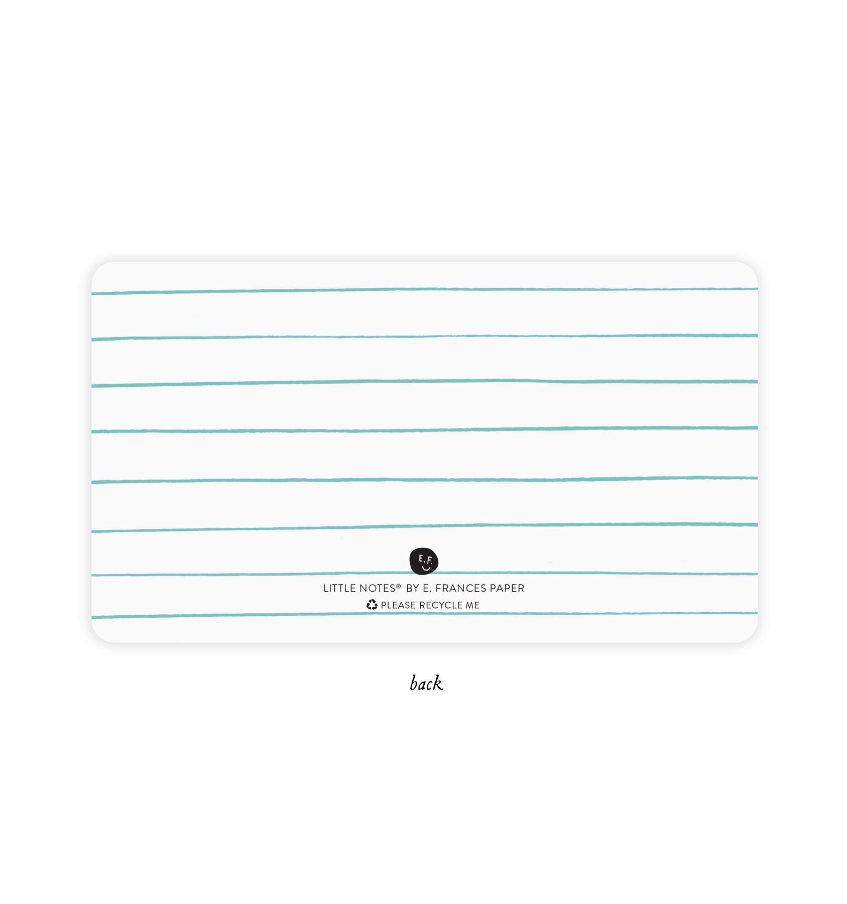 Yes, you read that correctly. Eighty-five sweet little chubby cards, cozily boxed together for you to use unsparingly as place cards, surprise notes, lunchbox love... It's like getting to use the good china every day - don't save them for special occasions, there are 85 for pete's sake! Get creative and tag your social media pics #LittleNotesInTheWild and show us how you use your Little Notes! Made in the USA. size 3.5 X 2 INCHES quantity 85 FLAT CARDS WITH FUN BACK feature SINGLE STYLE PER BOX