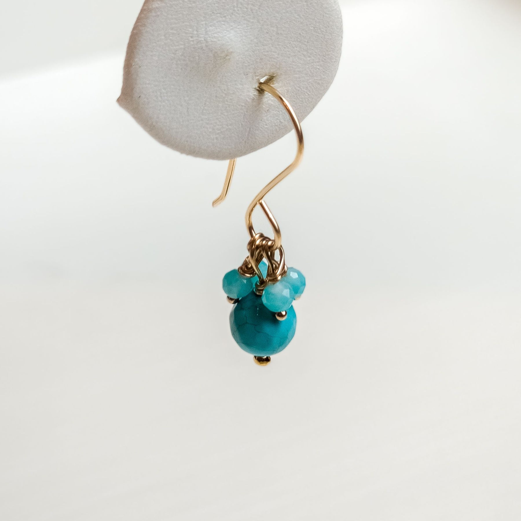 These turquoise & amazonite earrings on a gold-filled wire make a perfect accessory. Designed and hand built by Debbie Fisher in Brooklyn, NY.