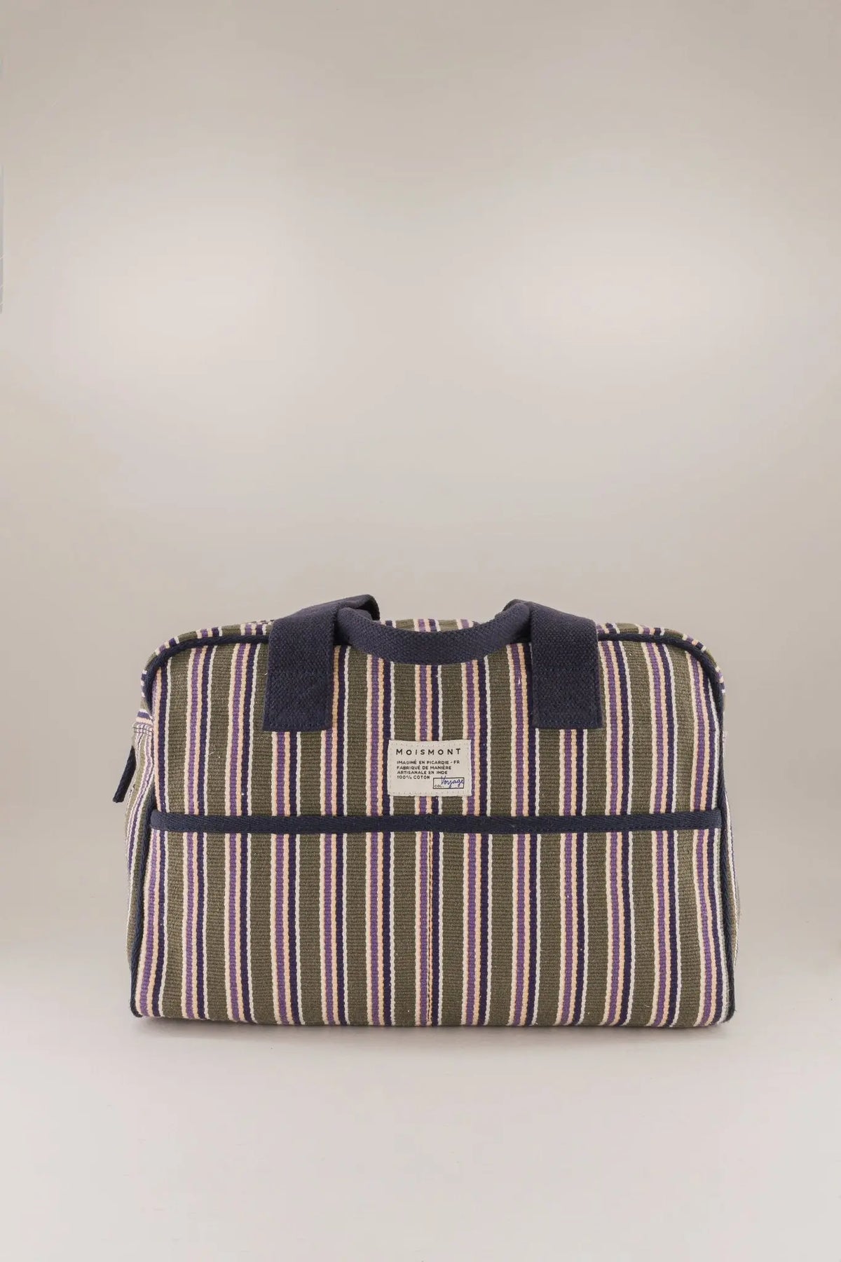The Moismont Small Weekend Bag N°47 blends French design with Indian craftsmanship in a perfectly sized cotton canvas carryall. Available in vibrant and earthy colorways—Bari Holi Yellow, Roma Royal Blue, Roma Khaki, and Pisa Navy Blue—each bag features a bold striped pattern and sturdy woven handles. Lightweight yet spacious enough for day trips, gym runs, or daily essentials, it's your go-to bag for effortless style on the move.