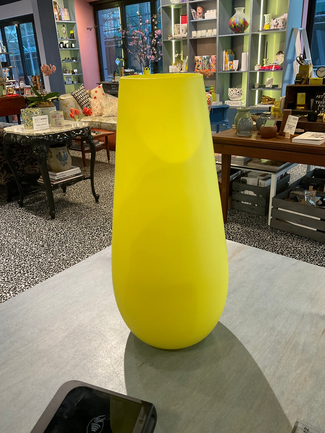 a decorative container, typically made of glass or china or stoneware and used as a vessel for cut flowers.
