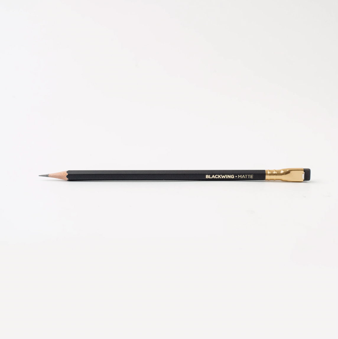 Ideal for musicians, woodworkers and anyone who prefer a soft, dark line, the Blackwing Matte is the softest of the four core Blackwing models. Each pencil features a timeless matte black finish, iconic square Blackwing ferrule and black eraser.