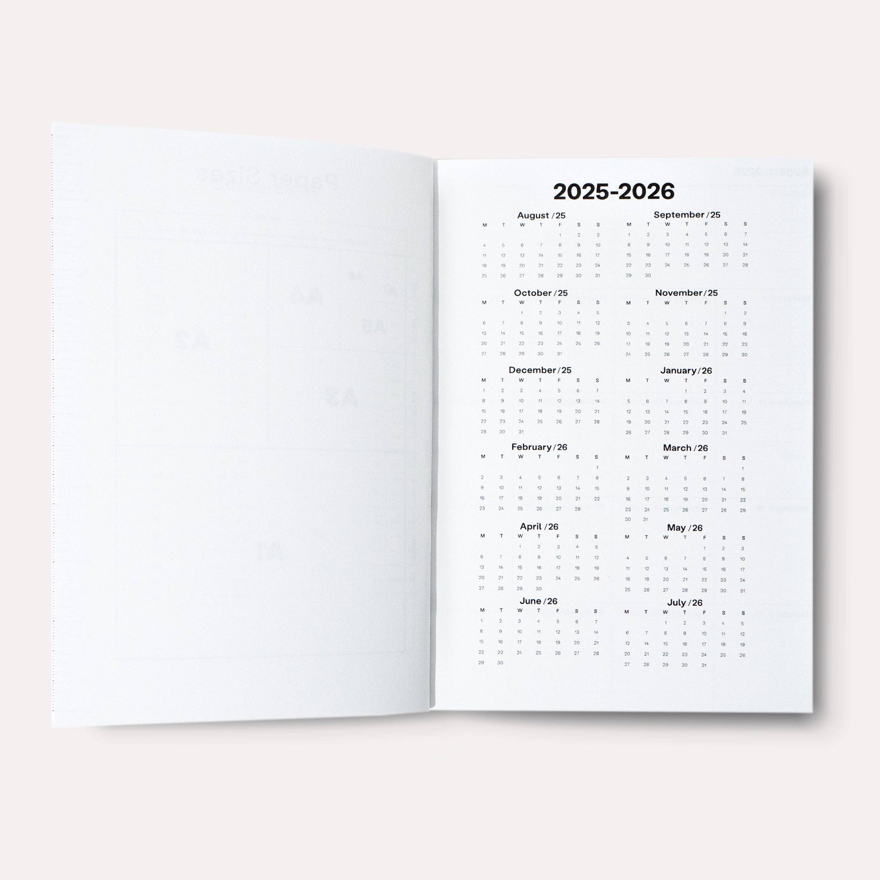 This is a 144 page 2025 layflat academic weekly planner. It has a 2 page spread per week, and 12 month pages - there's 52 weeks and 12 months in total and it comes with a matching bookmark. It is dated for the academic year, Aug 25 - Jul 26. This lovely book is made by a family run music book maker right here in the U.K., and the inside sheets are made from music sheet paper. The cover is a luxurious, textured 250gsm G.F. Smith card. Comes packed in a card folio box making it perfect for gifting.