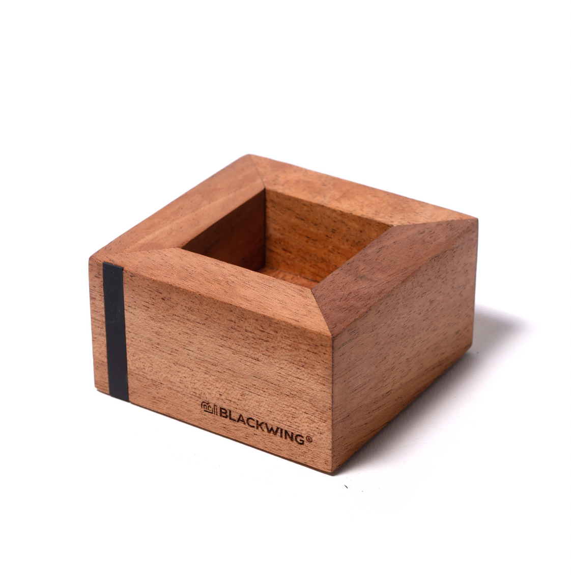 This solid mahogany display is designed to showcase a single 12-pack Blackwing pencil box in an upright position. It can be displayed on your desk, shelf or hung on a wall using the predrilled mounting holes. Engraved with the Blackwing logo on the side.