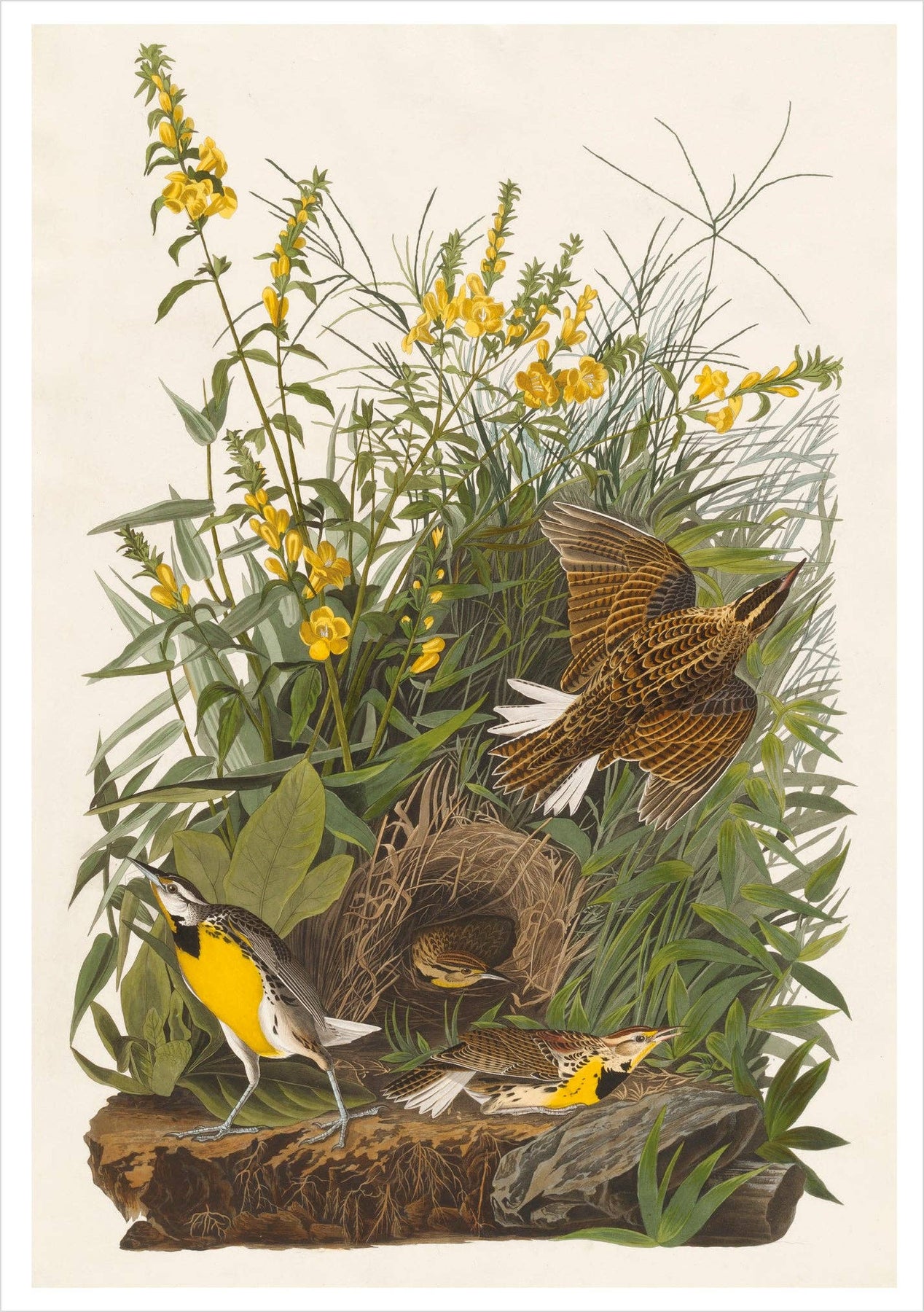 Artist and naturalist John James Audubon made history with his monumental work The Birds of America. Audubon was not the first to attempt to document all of America’s birds, but his effort has had the most lasting impact. His images, full of drama, set a new standard for ornithological art. Contains five each of the following notecards: Blue-winged Yellow Warbler, 1827 Meadow Lark, 1832 Rathbone Warbler, 1829 White-throated Sparrow, 1827 • 20 blank notecards (5 each of 4 designs) with envelopes in a decorative box • Printed in full color on FSC paper with soy based inks • High-quality 250 gsm card stock • Soft white envelopes • Pomegranate’s notecard sets feature exclusive selections of art from museums and artists around the world Box size: 5.375 x 7.375 x 1.5 in. Card size: 5 x 7 in. ISBN 9780764936586