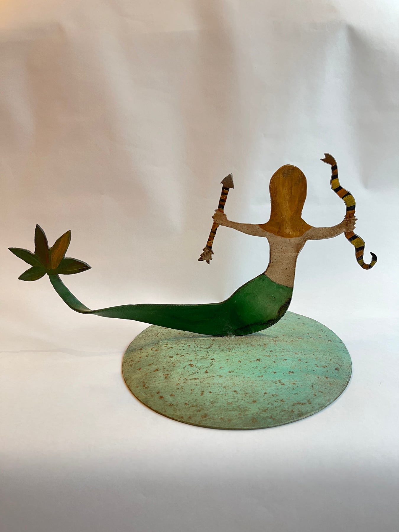 20th c., incl. a Nancy Thomas painted sheet metal mermaid, signed and dated (1991), and a copper sheet whale (possibly Dante Smith) weathervane on stand, no visible signature
