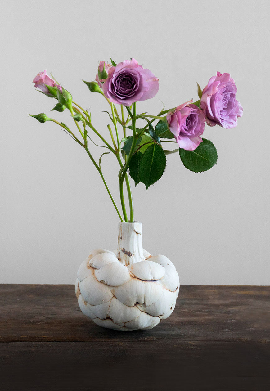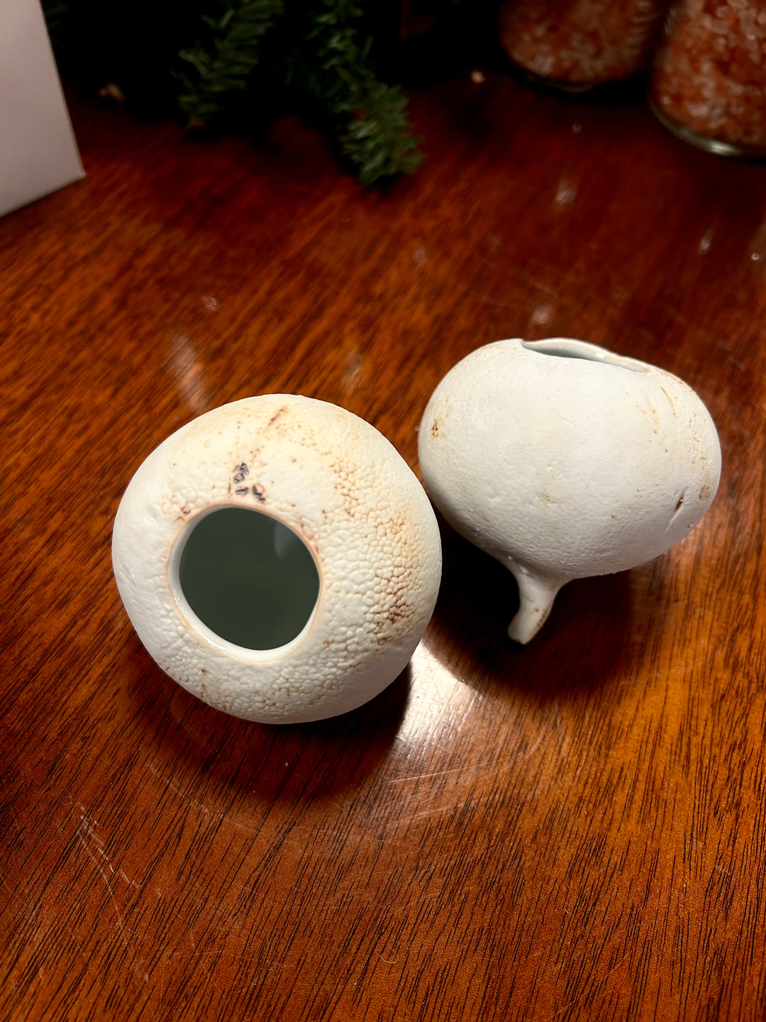 I draw my inspiration for ceramics from nature's formations and decay. On long walks through the catskill mountains, the shores of the Pacific, Atlantic and Mediterranean or my local park in Brooklyn, I collect lichen, wild plants, shells and rocks to immortalize in porcelain fossils. The unpredictable nature of clay, glaze and minerals in a high fire kiln provides the perfect environment for the exploration of organic forms and textures.