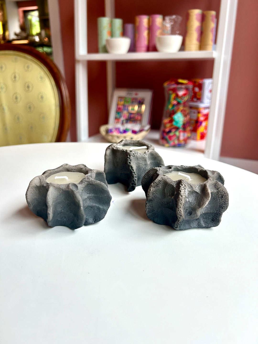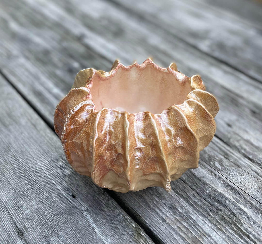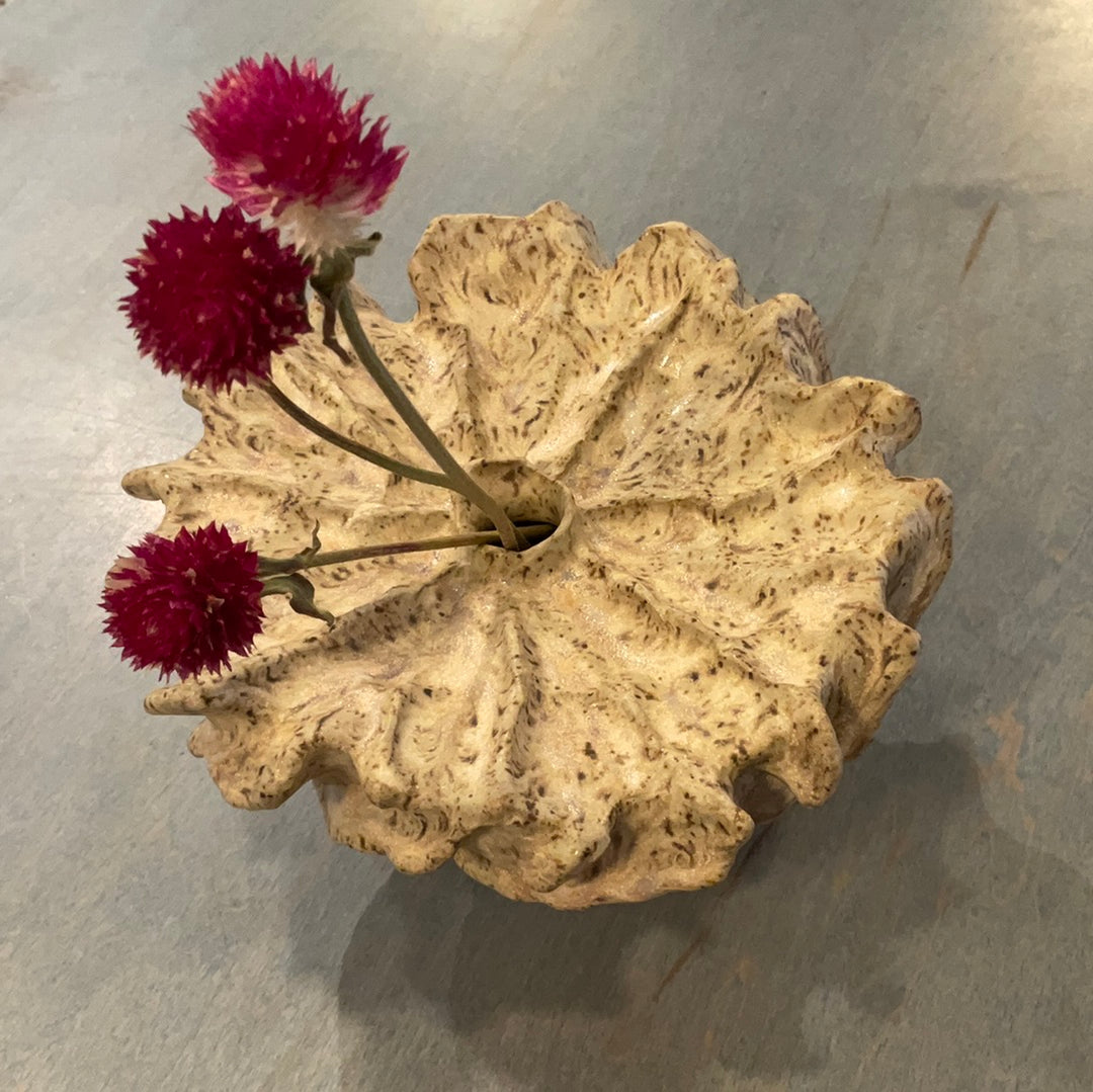 In the making of her work, she employs a whole range of clay working techniques, including throwing, altering, pressing, slabbing and coil building. All the pieces are fired two or three times. Some pieces receive a royal treatment of gold application.