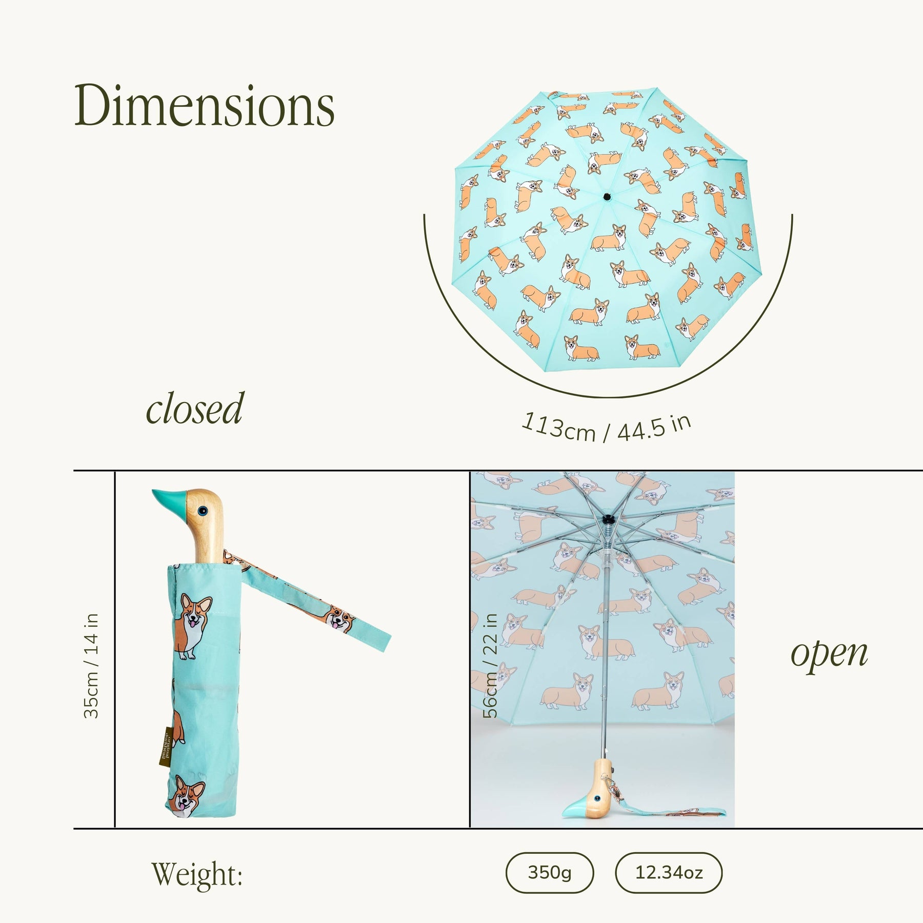 Original Duckhead have partnered with Parisian accessories brand Coucou Suzette on three limited edition dog prints. Each design features a bright blue eye, unique to this capsule collection. Meet The Original Duck Umbrella, sustainably handmade and built to last. Each canopy is made of 100% recycled plastic bottles. This compact umbrella fits into any backpack or tote bag, making it a convenient travel companion. You can rely on its sturdy build to keep you dry during any downpour. Perfect for spring 2025, sustainable, summer, travel, rainy season, unique gift idea, gifts for her, men's gift, book store gift, eco-friendly umbrella, dog umbrella, Christmas gift Color: Blue, turquoise, dog pattern, cartoon umbrella