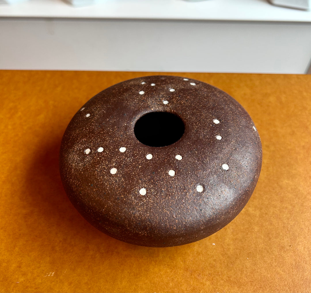 When creating a design, I start with a feeling,and then move on from there. I feel the clay in my hand and then decide what the form will be. Many times I am surprised with the results. I use rich glazes that invoke whispers of the earth and forms that echo the harmony of desert landscapes and unbroken vistas. I am inspired by nature as well as African, Italian and Native American art.