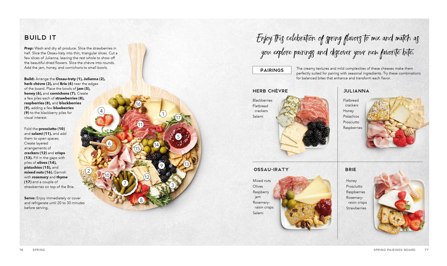 With a chapter for Winter, Spring, Summer, and Fall, you’ll learn to make nearly 50 creative, delicious boards that capitalize on the flavors and festivities of the season. Complete with suggested flavor and beverage pairings, styling tips, ingredient profiles, and more, Around the Board is your guide to year-round entertaining. Celebrate the beauty of winter with the Winter Pairings board, filled with bold, rich flavors and pops of juicy color from pomegranate and citrus.   When a beautiful spring day calls for a brunch gathering, Emily walks you through the steps of building a beautiful display of pastries, granola, spreads, fresh fruit and more.   As calendars fill up with holidays and celebrations throughout the summer and fall, you'll find recipes for boards to enjoy from the 4th of July to Halloween, all featuring seasonal ingredients, delicious pairing options, and eye-catching yet easy-to-achieve arrangements. Each recipe is accompanied by annotated photography that guides you through the steps to c