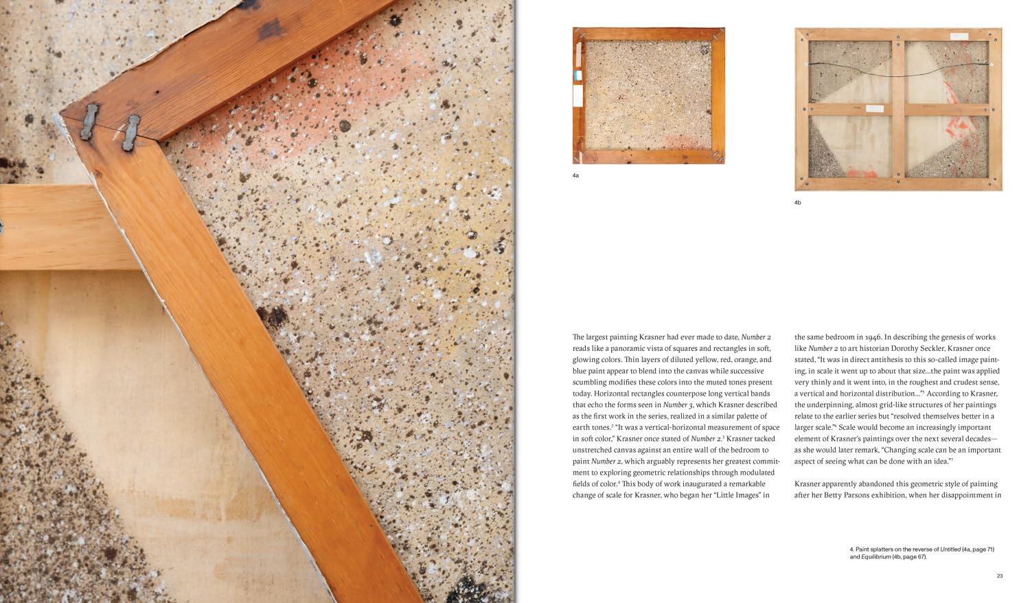 The early works of Abstract Expressionist pioneer Lee Krasner (1908–84), in her first solo exhibition in 1951, emphasized geometric relations. But during this same period, Krasner would often destroy or paint over her canvases to create new works. In a special and ambitious exhibition, Kasmin reunites the only two surviving paintings from her first solo show, displayed together for the first time in over 70 years. Replete with 18 color plates, related archival material and newly commissioned texts, The Edge of Color foregrounds a rarely examined chapter of Krasner’s five-decade career. Beyond the scope of an exhibition catalog, the book takes its reader behind Krasner’s paintings to provide never-before-published visual evidence regarding these early paintings. It positions these works, realized in the upstairs bedroom at the artist’s home in Springs, NY, in relation to Krasner’s contemporaries including Jackson Pollock and Piet Mondrian.