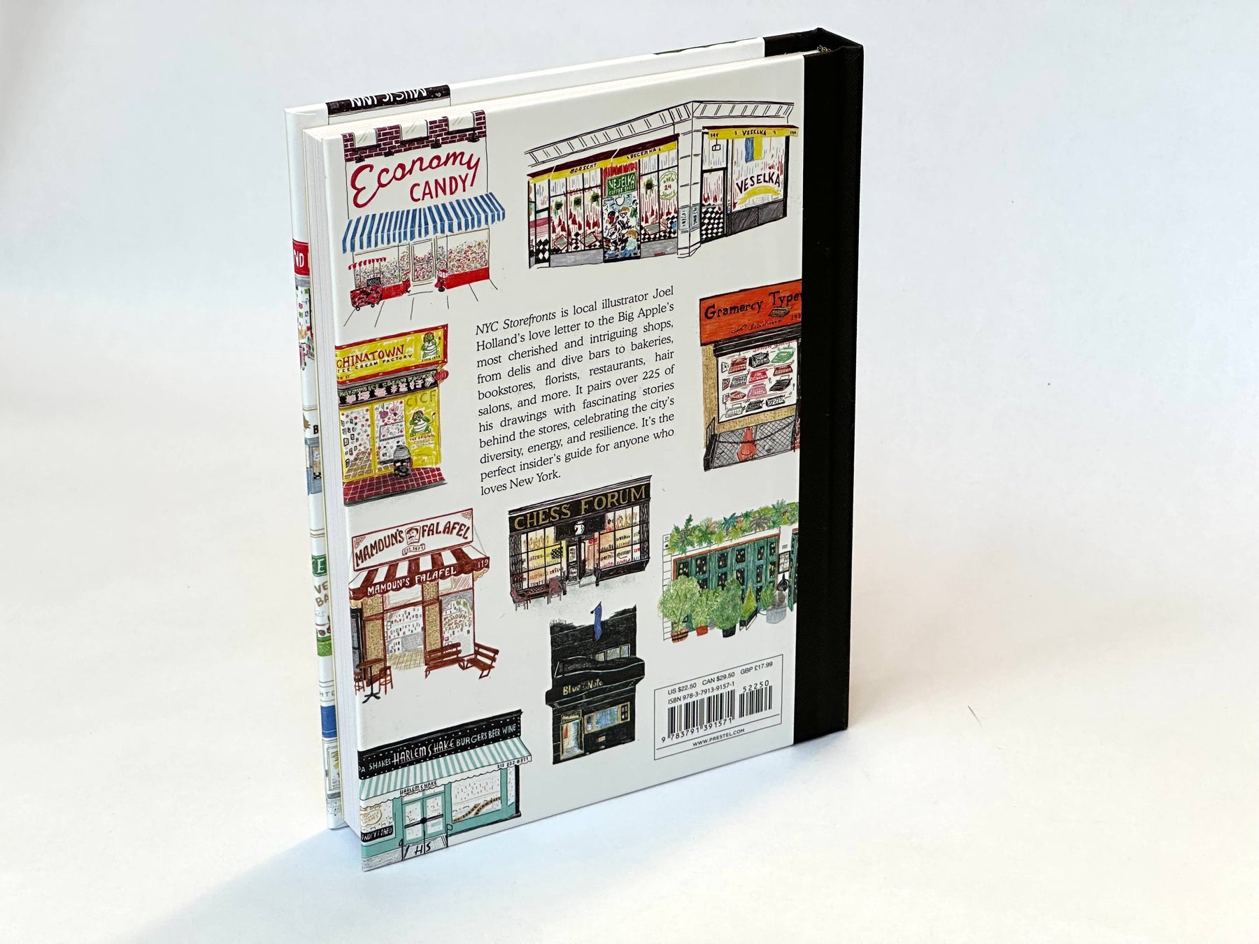 Every New Yorker has a favorite place to shop—whether it’s for pizza or flowers, to grab a beer, or slurp down soup dumplings. When the coronavirus crisis hit in 2020, illustrator Joel Holland began drawing storefronts near his apartment as a way of memorializing an element of city life that seemed suddenly precarious. He posted them on Instagram and they quickly drew an avid following. Eventually, Holland’s collection grew to include shops recommended by friends or strangers online. This book showcases 225 of his delightful illustrations and runs the gamut, from delis and bodegas to dive bars, bookstores, bakeries, newsstands, cafés, restaurants, and more. Each image is paired with engaging text written by journalist David Dodge and filled with the historical, cultural, and architectural details that have earned these stores a place in people’s hearts. Also included is a foreword by beloved Instagrammer New York Nico, who is known for chronicling the city’s independent businesses. The perfect gift for New