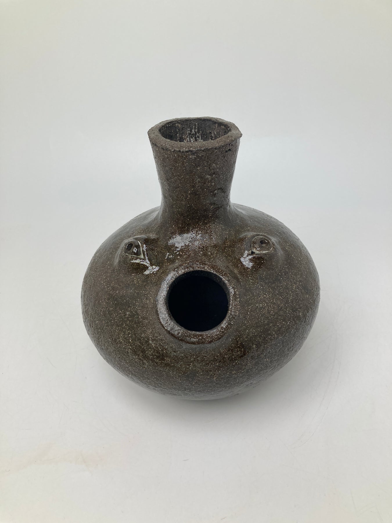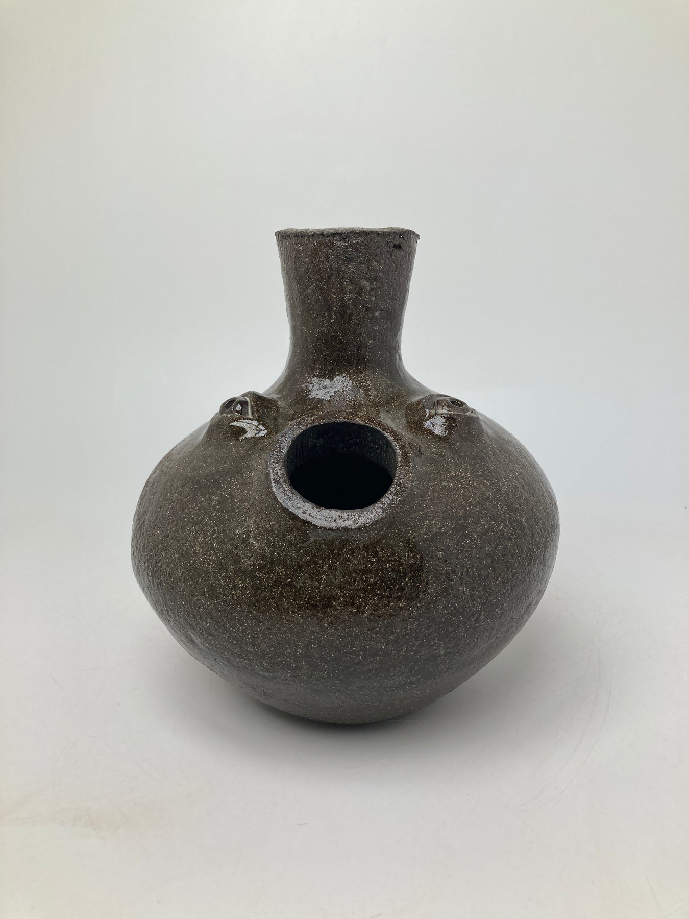 The Udu drum is a ceramics instrument of Nigerian origins. This piece produces a low vibrating tone when struck. Hand made at BKLYN CLAY in Brooklyn, NY by artist Day Brierre.