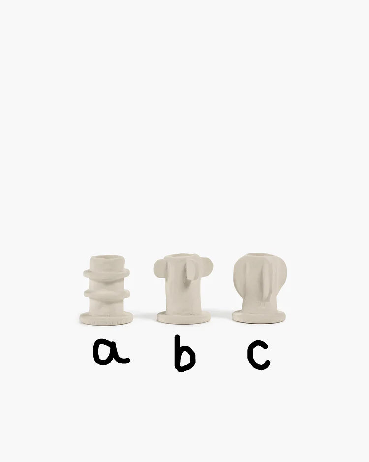 Executed in white stoneware, the 02 Molly candle holders have a matte outer finish and are glazed on the inside. These candle holders are a graphic eyecatcher in any room.