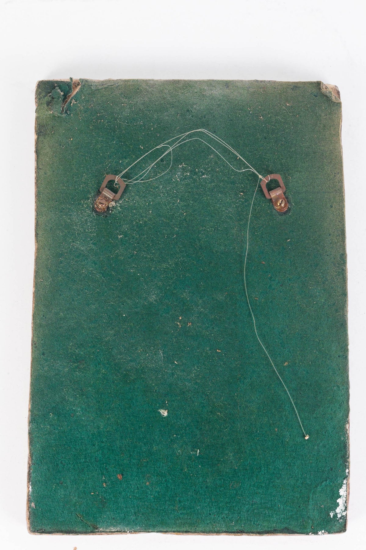Tile measures approximately 14"H x 9.5"W. It is a hand painted tile showing two birds in a flower garden. Item has felted back and hanger.