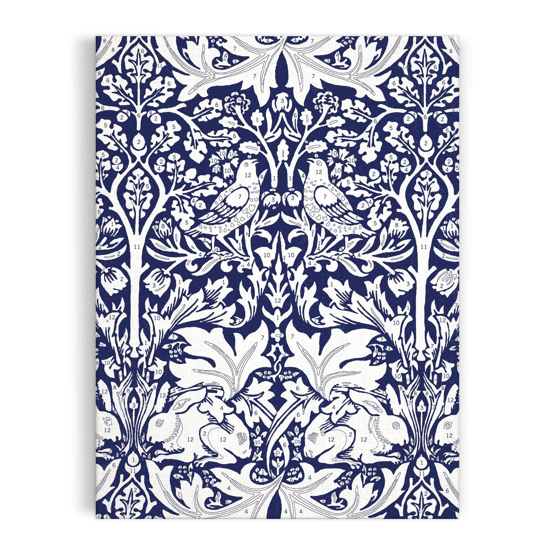 Engage with design history through this paint-by-number kit featuring William Morris's celebrated Brother Rabbit pattern, originally created in 1882. The composition showcases rabbits, birds, flowering trees, and botanical elements. This complete kit includes pre-mixed colors, a full-color reference guide, and a numbered canvas that makes the creative process accessible to all skill levels. As you paint, you'll bring Morris's enduring design legacy to life, producing a finished 9 x 12" artwork that celebrates over a century of decorative arts influence and timeless artistic vision. * One 9 x 12" Preprinted Canvas * 12 Acrylic Paints * 3 Different-Sized Paintbrushes * Instruction Sheet with Numbered Guide