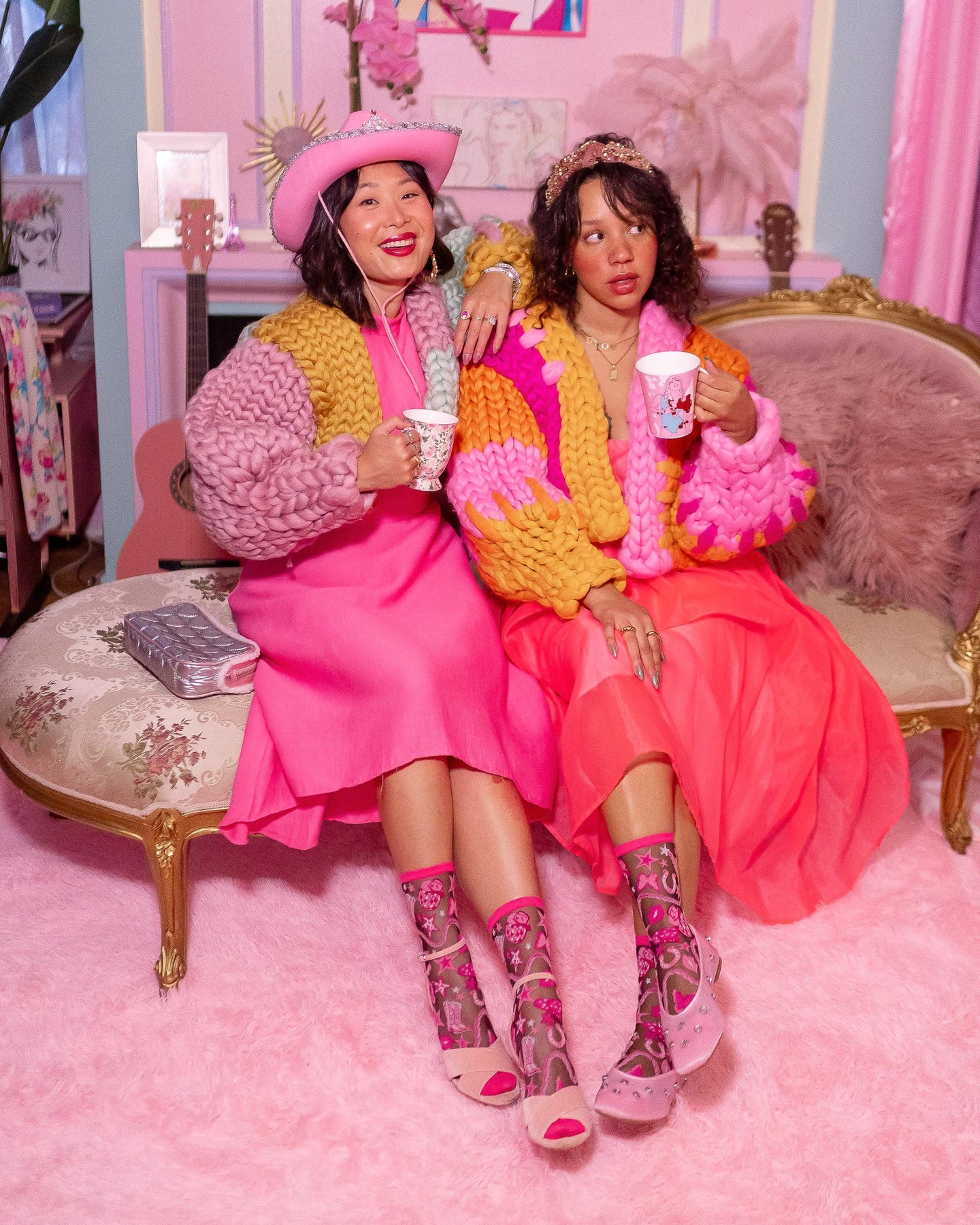 Barbie meets cowgirl aesthetic in our disco-inspired, black sheer sock that will make you the life of the party! Features girly pink elements of butterflies, lips, and stars, combined with cowgirl boots and hats, disco balls, and horseshoes. Finished with a glittery pink cuff, heel and toe for the ultimate party accessory.