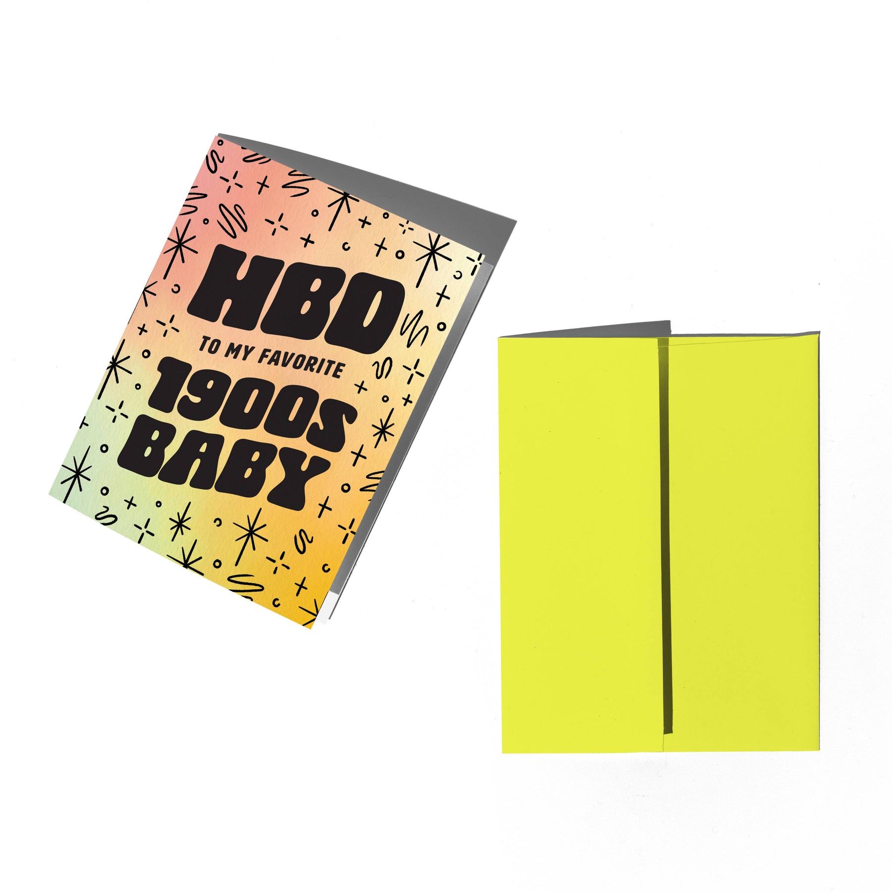 Celebrate your bestie born in the 20th century! Printed on 100% recycled paper and paired with a coordinating envelope. Blank inside and sealed in a protective cellophane sleeve. Size A2 (4.25" x 5.5"). Card reads "HBD to my favorite 1900s baby" against a dreamy gradient backdrop.