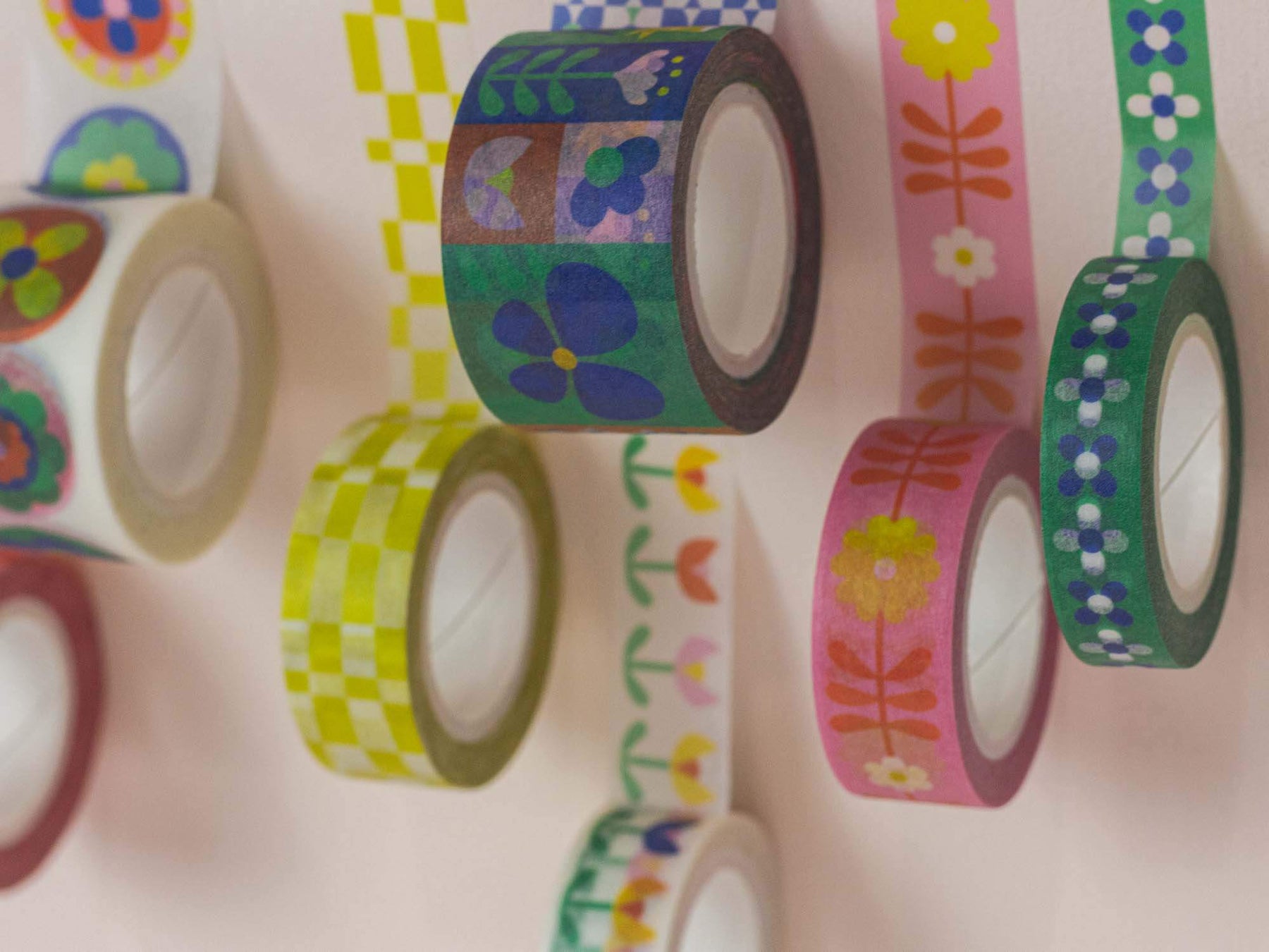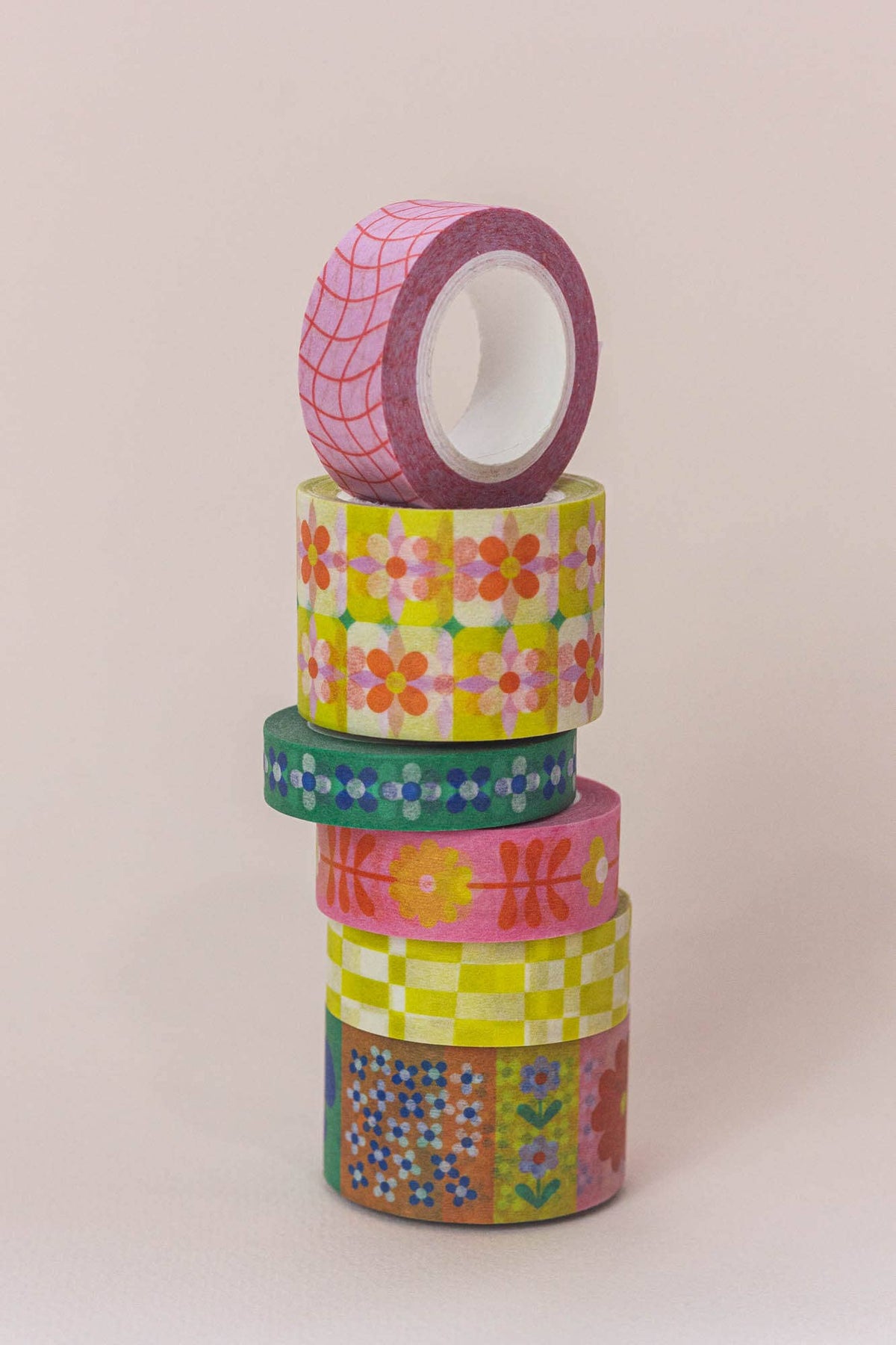 Rainbow-bright and bold-hued color-blocked flowers on this retro floral washi tape. Part of Flower Friends, a series of cards, art prints, and washi with cute, minimal, graphic floral illustrations. Our washi is beloved by both kids and adults and makes a cute and fun gift or stocking stuffer for crafters, paper lovers, and designy types of all ages :) Washi is semi-translucent paper masking tape perfect for scrapbooking, journaling, decorating, hanging up polaroids, artwork, or doodles, or stick it to anything that needs a little extra flair. Oh and our washi sticks really well! We didn't want to bring washi into this world that had sad to mediocre adhesion so trust us on this, or just try it yourself!! • One roll of washi tape • Individually wrapped • 25mm x 10m • Made in Taiwan