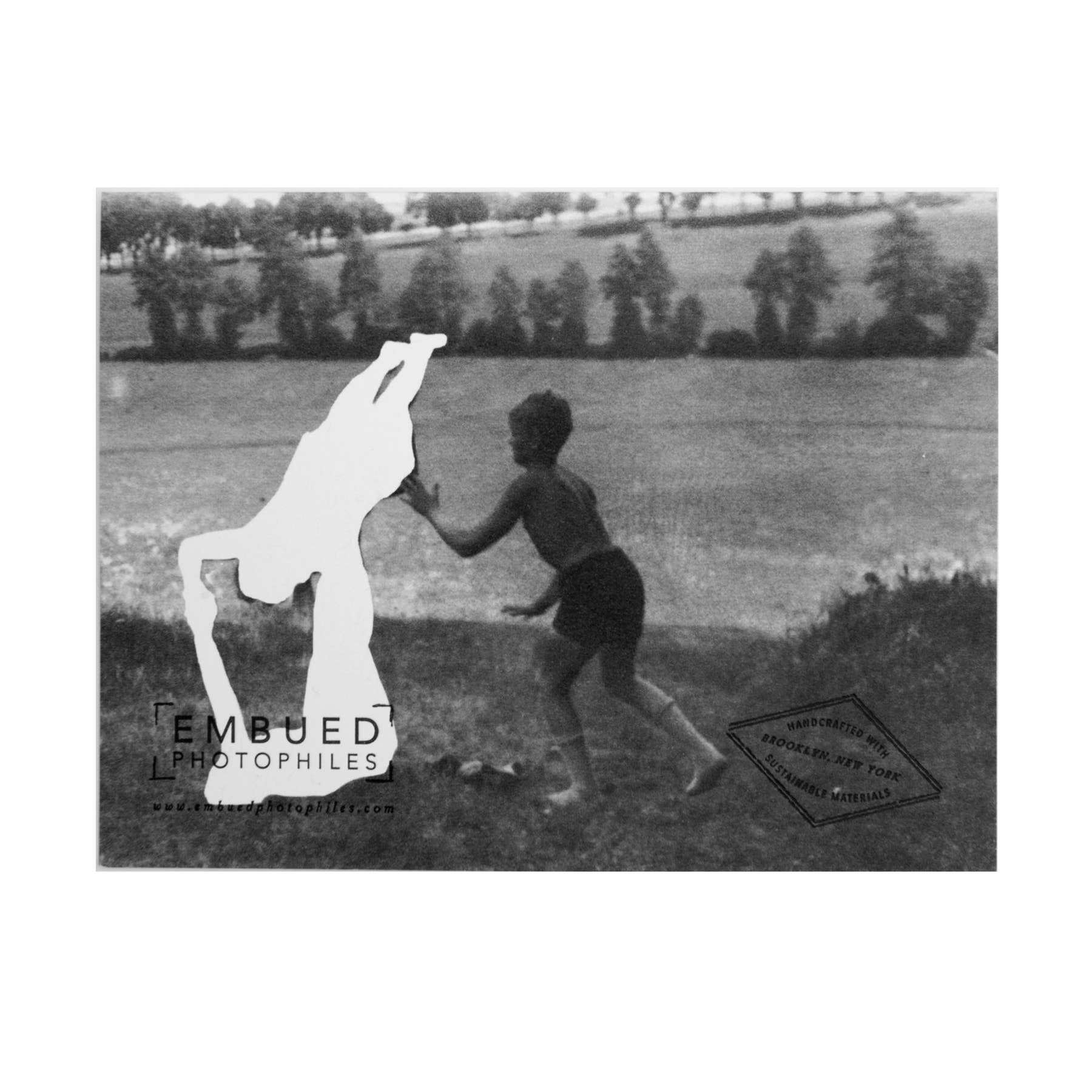 From the Origin Unknown series. Photograph from Beth's collection of anonymous antique photographs. Front image relates to back in Embued's signature card style. Front reads : I GOT YOU, GIRL Letterpressed. Blank inside. 100% post-consumer white card stock / white envelope
