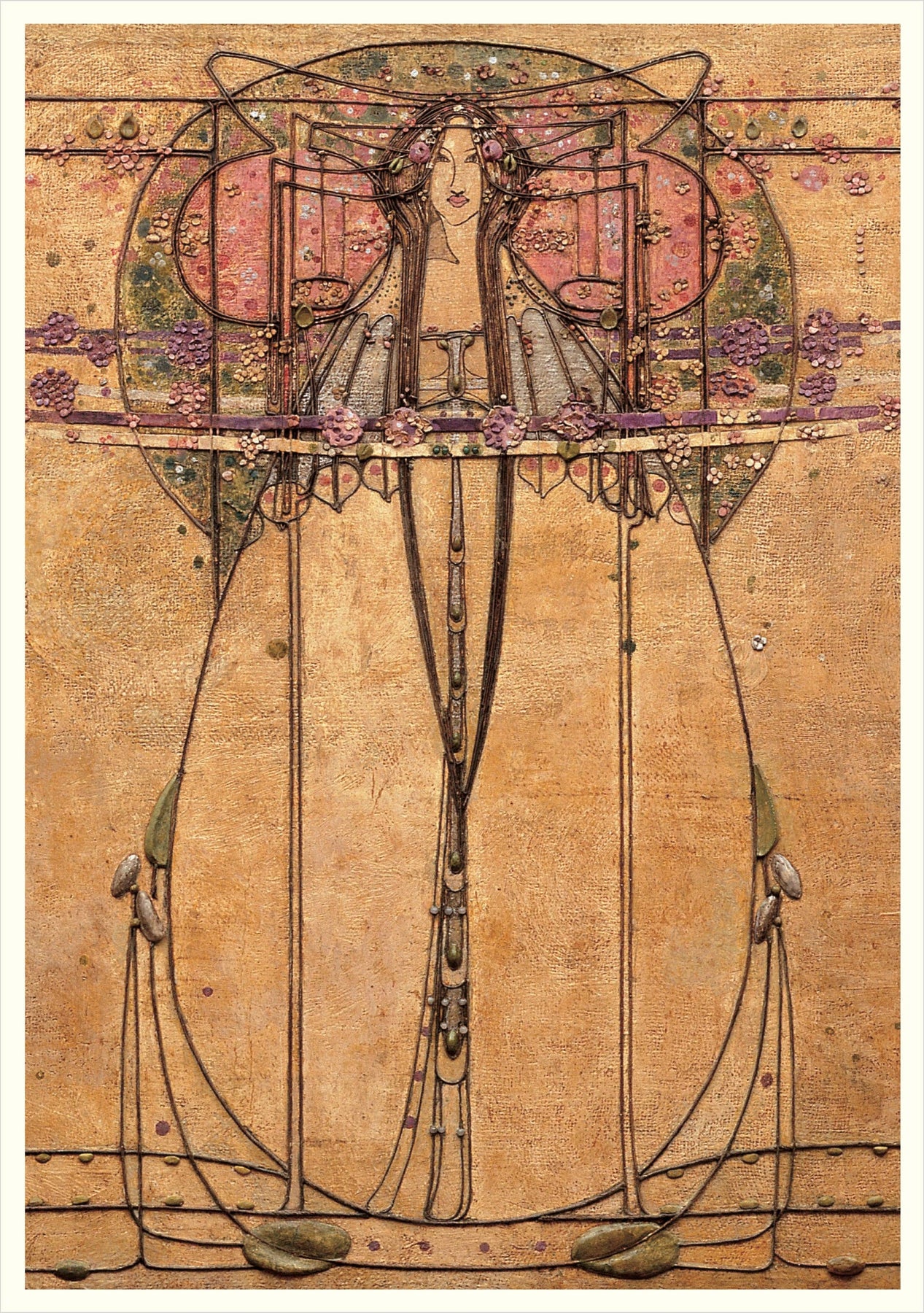 The cards in this assortment reproduce some of the exquisite designs for the tea room wall decorations created by Charles Rennie Mackintosh and his wife, artist and designer Margaret Macdonald Mackintosh (1865–1933). The back of each card offers a traditional tea room recipe (oatcakes, Scotch pancakes, perkins, and shortbread) from Perilla Kinchin’s book Taking Tea with Mackintosh: The Story of Miss Cranston’s Tea Rooms (Pomegranate, 1998). Together, these designs and recipes evoke the charming ambience of Miss Cranston’s tea rooms. • 20 blank notecards (5 each of 4 designs) with envelopes in a decorative box • Printed in full color on FSC paper with soy based inks • High-quality 250 gsm card stock • Soft white envelopes • Pomegranate’s notecard sets feature exclusive selections of art from museums and artists around the world Published with Glasgow Museums Box size: 5.375 x 7.375 x 1.5 in. Card size: 5 x 7 in. ISBN 9780764999789