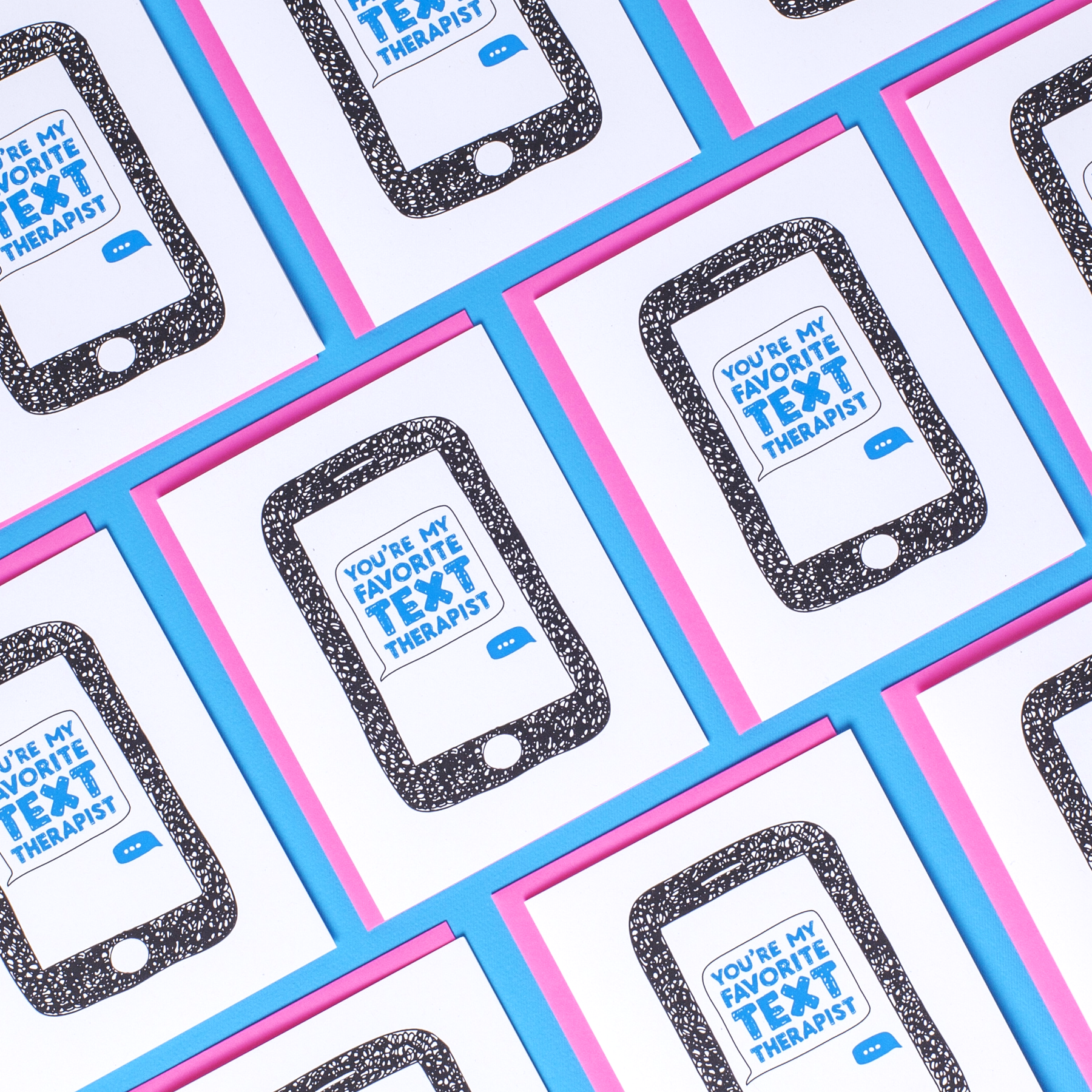 digitally printed on #130 heavy weight recycled paper. hand illustrated design and type. Paired with neon pink envelope. For the pal that's always on the other end of the phone with the best advice! anti anxiety gift, bestfriend gift, letterpress cards, hilarious cards, silly greeting cards, mental health gift, funny, card for therapist, thinking of you gift, encouragement cards, roommate gift, i miss you card, Galentines Day card