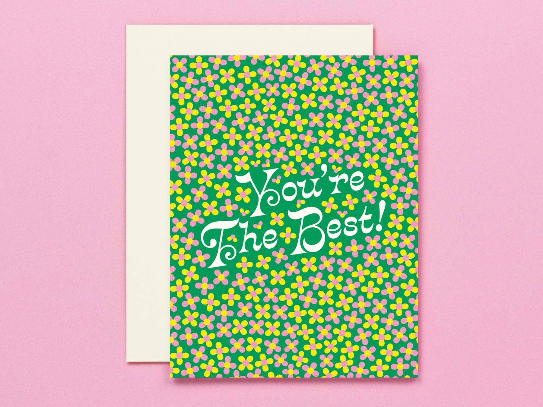 You're the Best Cheerful ditsy floral pattern surrounds bold retro typography that reads, "You're the Best." For thank yous, friendship, and general appreciation of those people in your life who are the absolute best. Coordinates with our Little Fleurs on the Prairie gift wrap. Part of Fleurry Vision, a series of maximal flower-centric greeting cards with patterns and designs that play tricks on your eyes.
