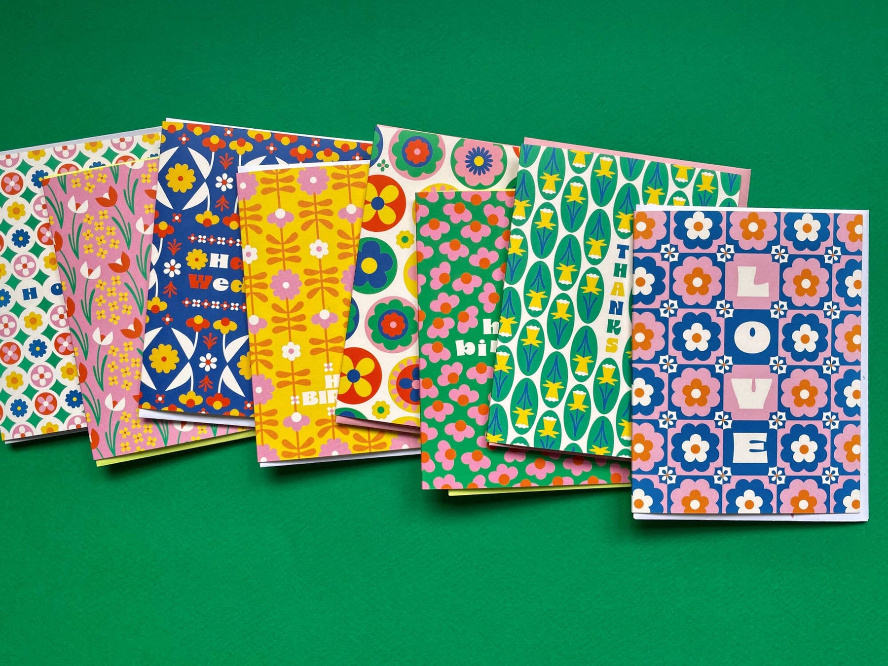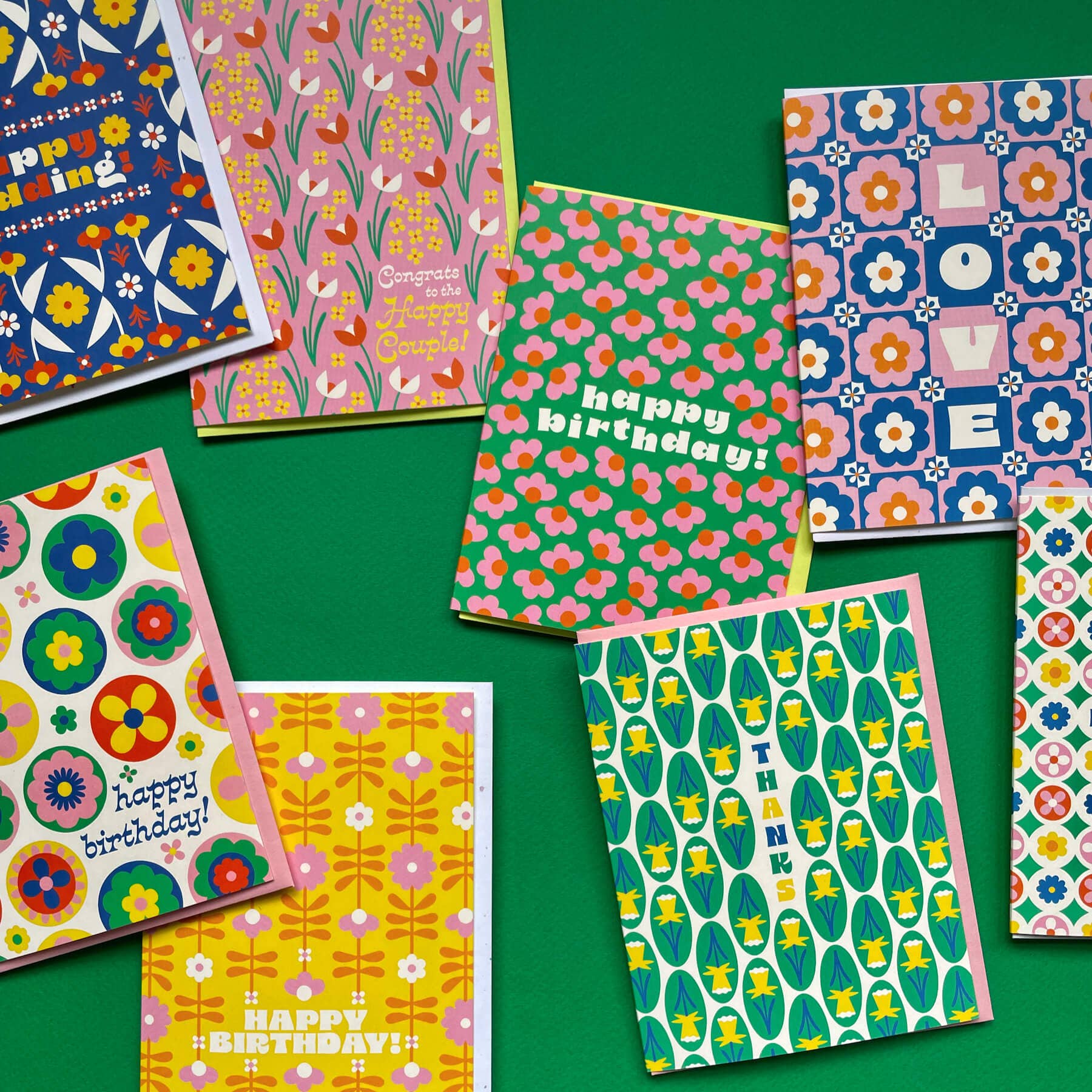 It was a tulip wedding and the old fleurs wished them well... A pretty pattern of swaying tulips and dainty wildflowers to send wedding wishes to the happy couple. Part of Fleurry Vision, a series of maximal flower-centric greeting cards with patterns and designs that play tricks on your eyes. Bold colors and retro typography add to the vibrance of this loud and dynamic collection. • Greeting Card • Blank inside • A2 (4.25" x 5.5") • 100# FSC-certified paper • Comes with a color-coordinated envelope • Packaged in a protective cellophane sleeve • Flat-printed • Printed in the USA