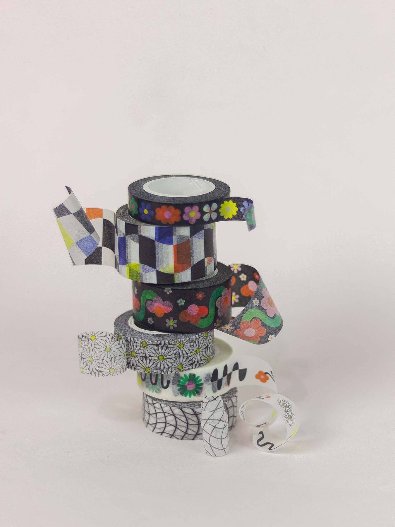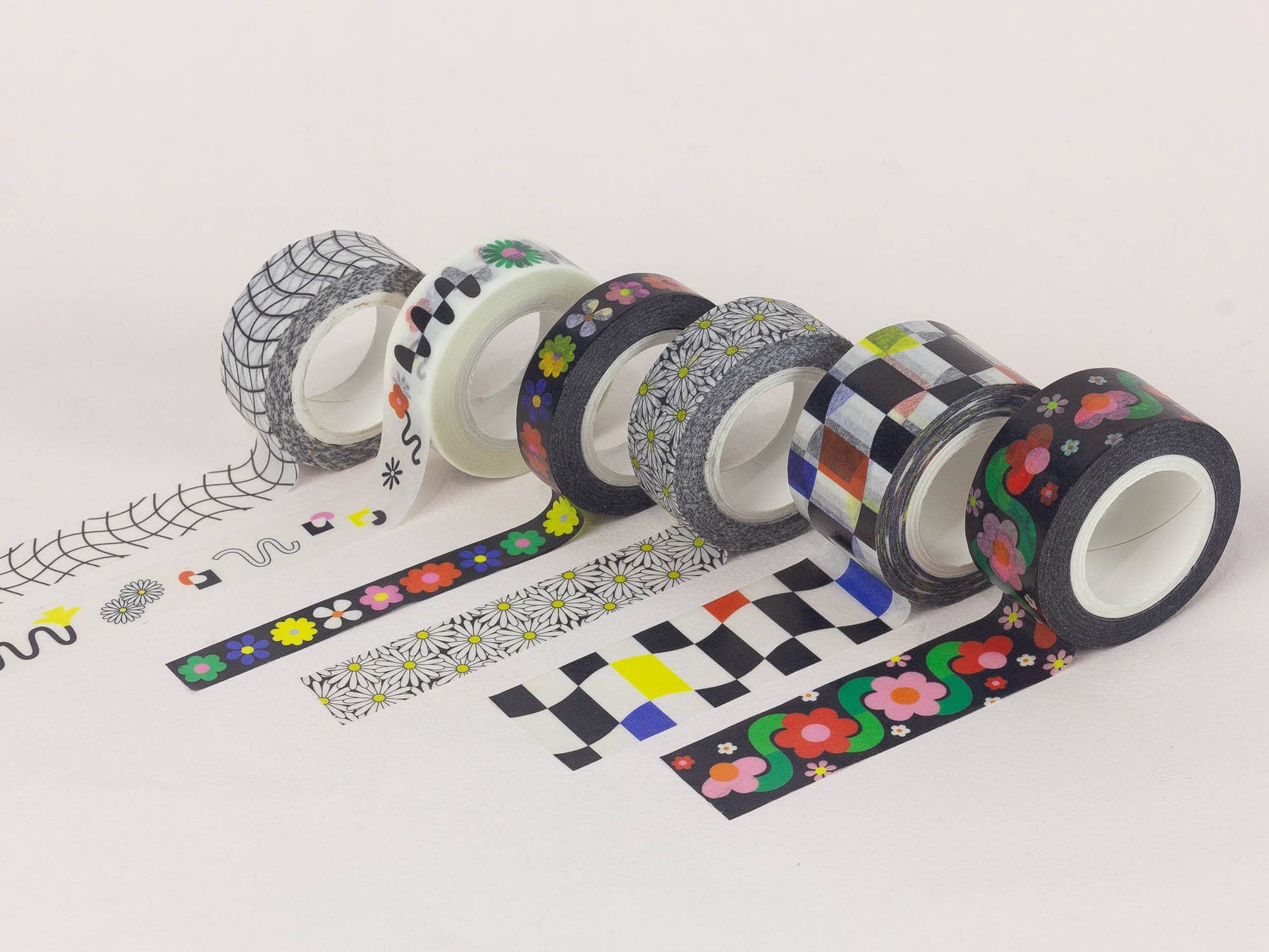 Grid Noir black and white wavy grid pattern washi tape. Our washi is beloved by both kids and adults and makes a cute and fun gift or stocking stuffer for crafters, paper lovers, and designy types of all ages :) Washi is semi-translucent paper masking tape perfect for scrapbooking, journaling, decorating, hanging up polaroids, artwork, or doodles, or stick it to anything that needs a little extra flair Oh and if you were wondering, yes, our washi sticks really well! We didn't want to bring washi into this world that had sad to mediocre adhesion so trust us on this, or just try it yourself!! * Washi tape * Individually wrapped * 15mm x 10m * Made in Taiwan