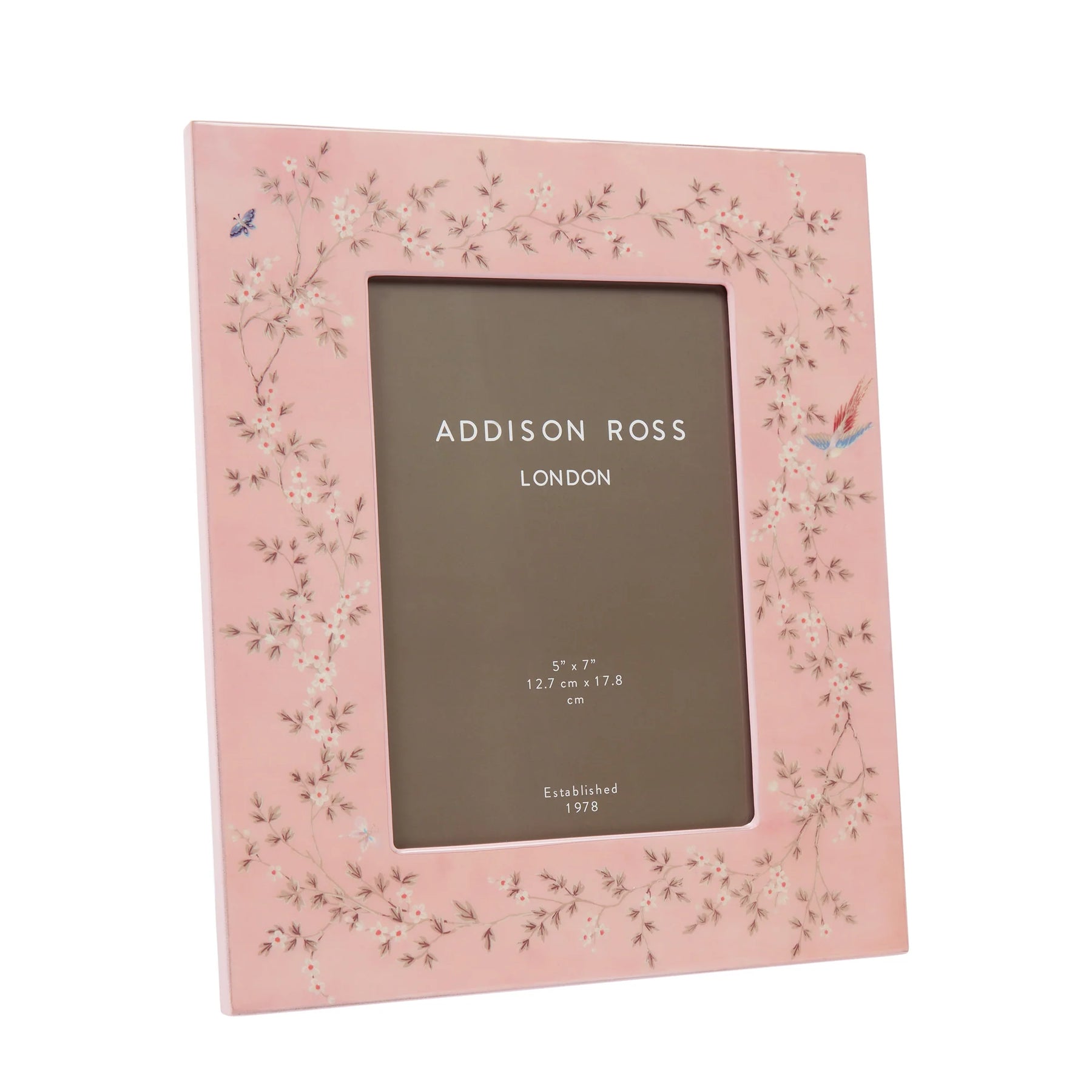 This 5x7 in. Chinoiserie blossom photo frame was exclusively designed by Sarah & David Ross, finished with 20 coats of high glass lacquer, hand polished between each coat.