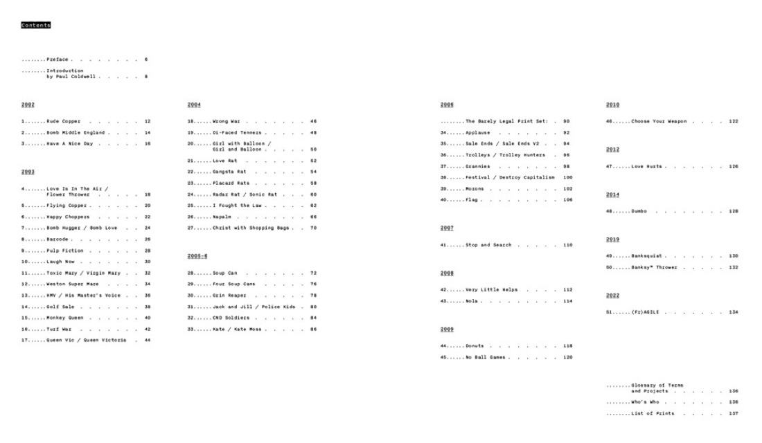 Banksy: The Prints by Roberto Campolucci-Bordi The artist known as Banksy has been creating works for over three decades and is one of the best-known artists of our age. Banksy has always believed the best place for his work is on a wall, where it's free and accessible to everyone. That said, since 2002, he’s also created around fifty-one print editions, producing an estimated 30,000 artworks. His Pictures on Walls (POW) project played a huge role in shaping his career and the street-art scene at large. This unauthorized guide to Banksy's print editions meticulously documents 174 unique prints, presenting an unparalleled visual catalog of these hugely collectible works.In addition to making his art accessible to a larger audience, these prints often expand on themes seen in his wider body of work, making them essential in understanding his artistic development over the last two decades.