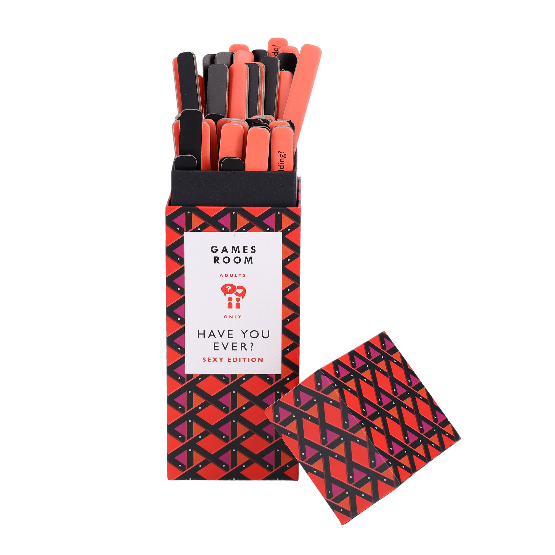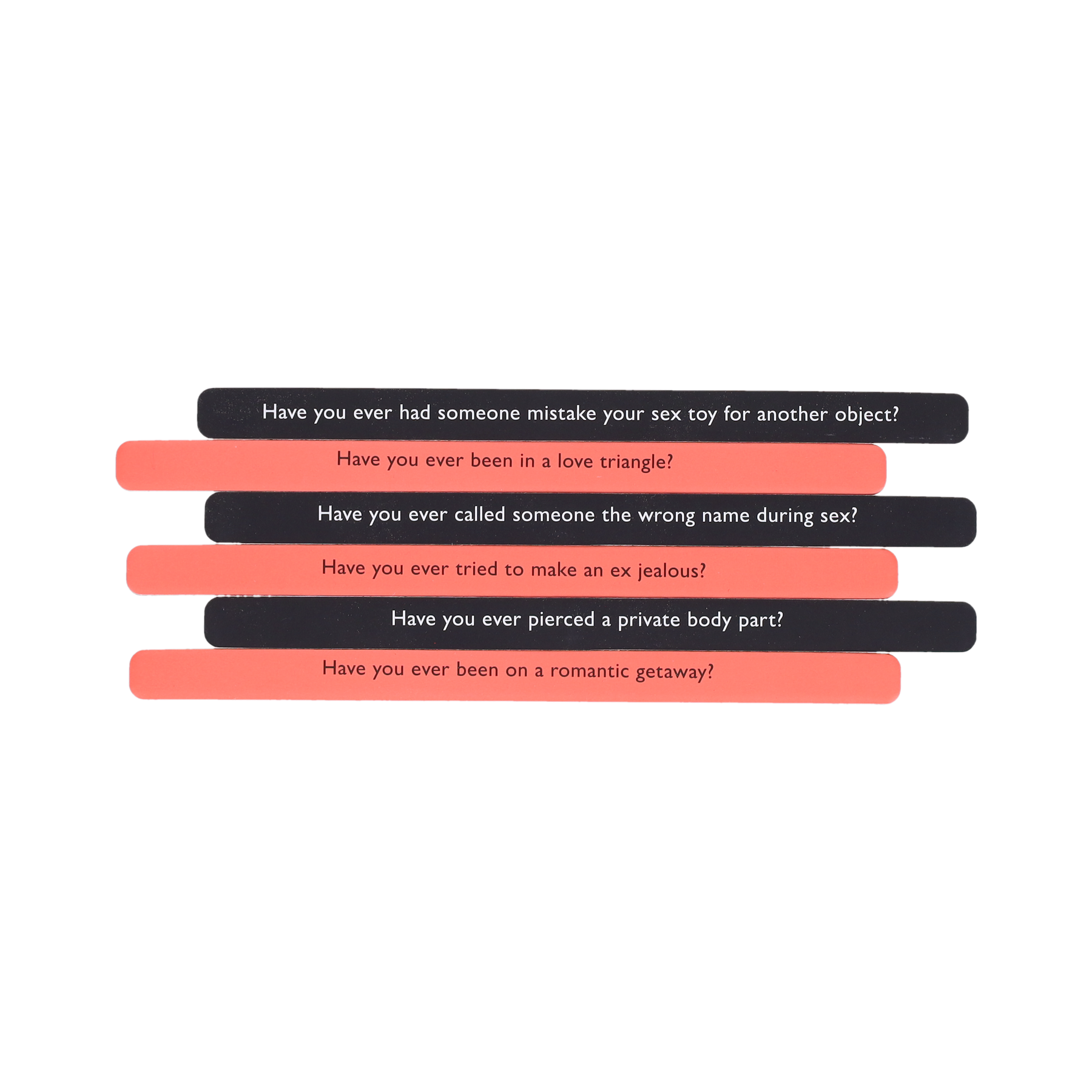 Uncover memories and spill saucy secrets with your friends, fellow partygoers, and potential love interests with this entertaining game designed for ages 18 and up! With 100 “have you ever” questions on 50 double-sided sticks, these conversation starters range from benign to risqué. One side of the stick includes sweet, romantic, and funny questions, such as: Have you ever kissed in the rain? Gone commando in public? Been on a terrible first date? The other side includes spicier questions for those willing to be a bit more risqué! Have you ever had sex in the shower? Posed nude? Hooked up with a stranger? Packaged in a handy portable box, this is a great game to bring along to parties or game nights with your adult friends or to spice up date night.