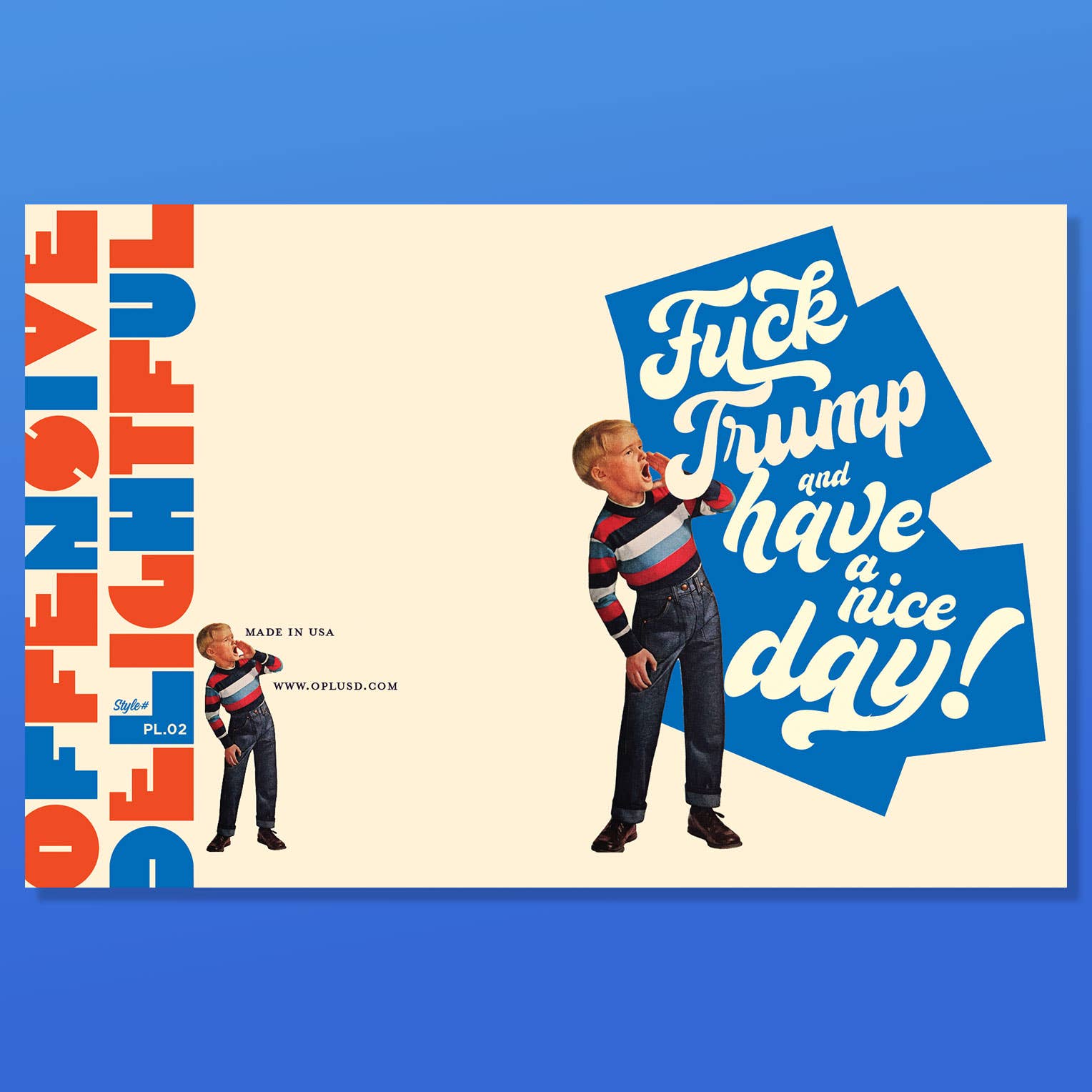 "F*ck Trump! and have a nice day!" Style No. PL02 For those of us who need this everyday to not die inside. political card