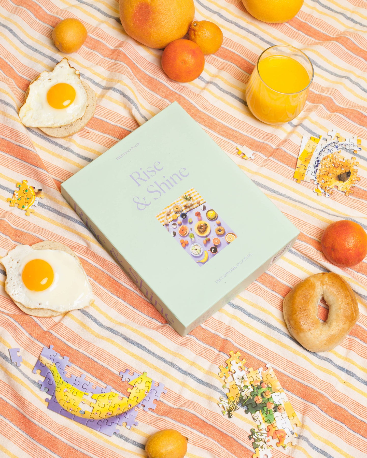 Sparkly strawberries. Bedazzled bagels. Rhinestoned olives. Tiny, tiny daisies. This smorgasbord is truly the breakfast of champions. It’s just like the old saying: all that glitters is...a truly delightful brunch puzzle. PRODUCT INFORMATION 1000 piece puzzle Completed puzzle is 19.25 x 26.6 inches Thick stock and high-quality art paper Board is 100% recycled paper Mother's Day gifts- Spring - Summer - Easter - Hostess Gift