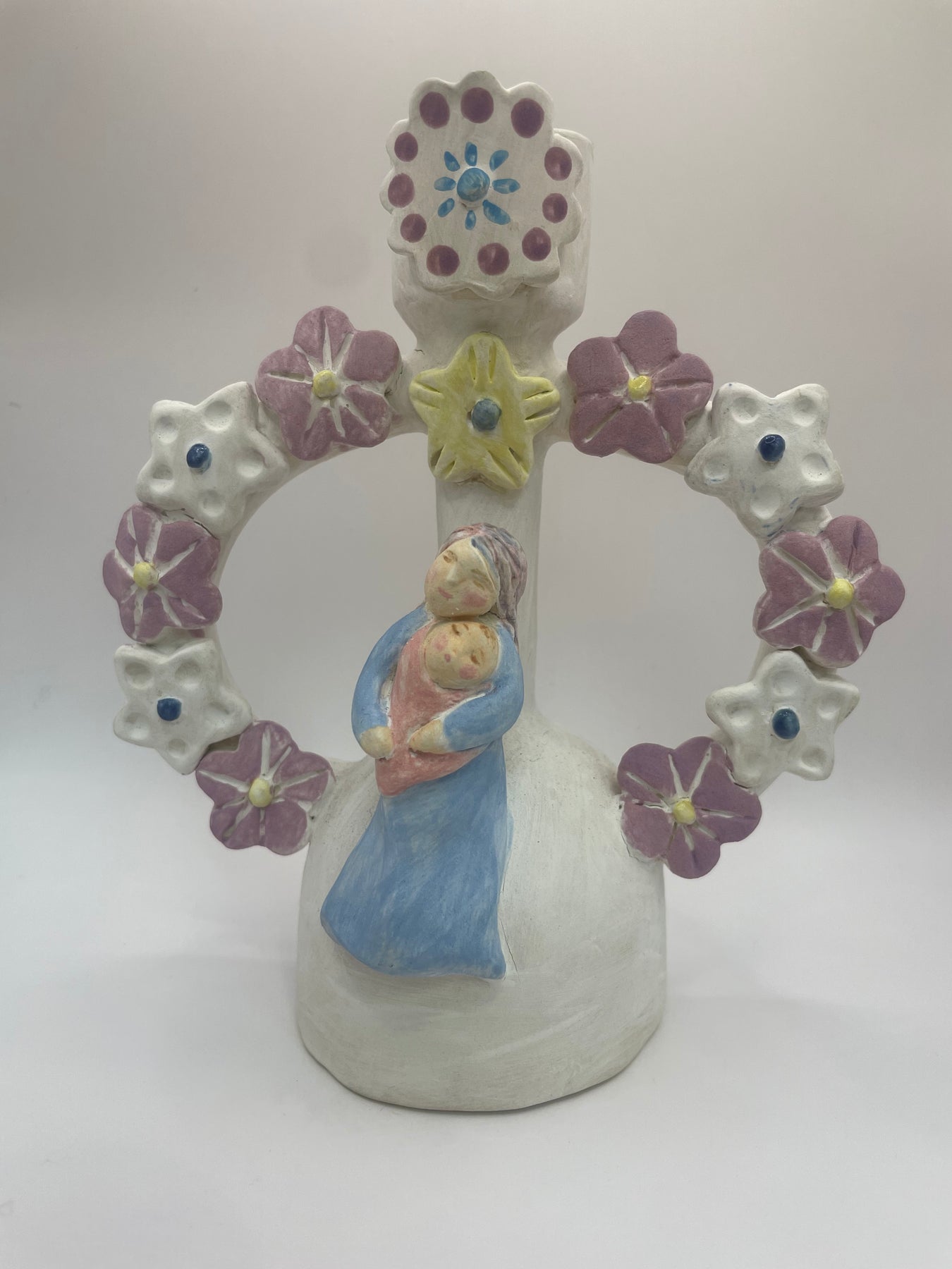 mother and babe pink and blue flowered candlestick holder by Satchiko!
