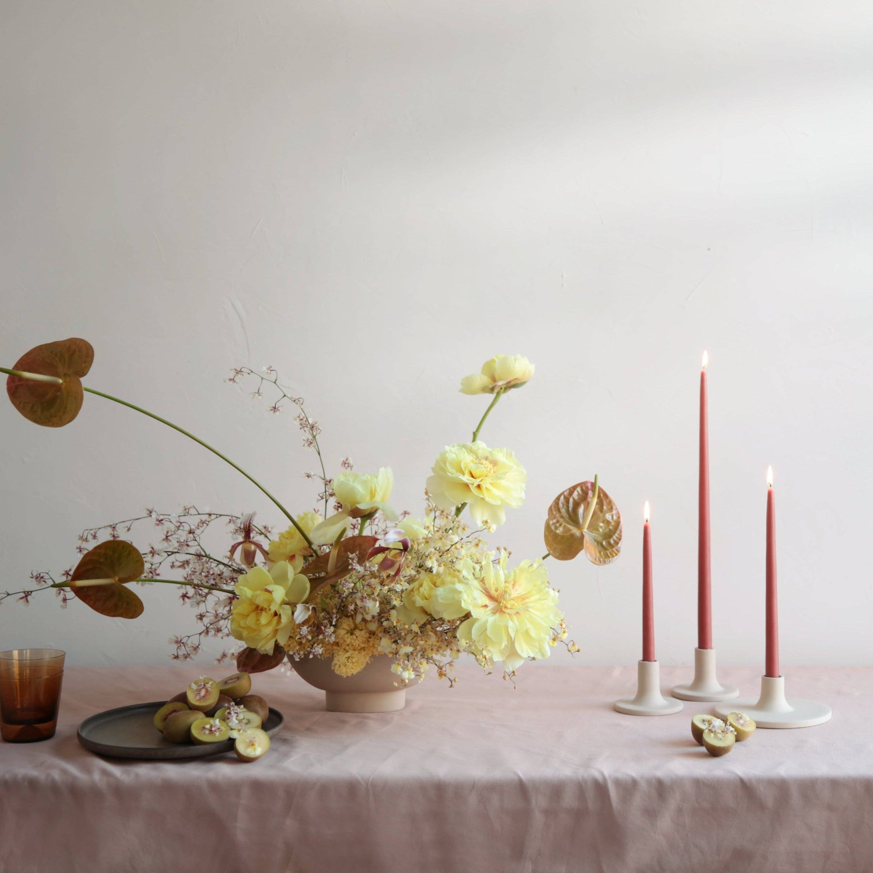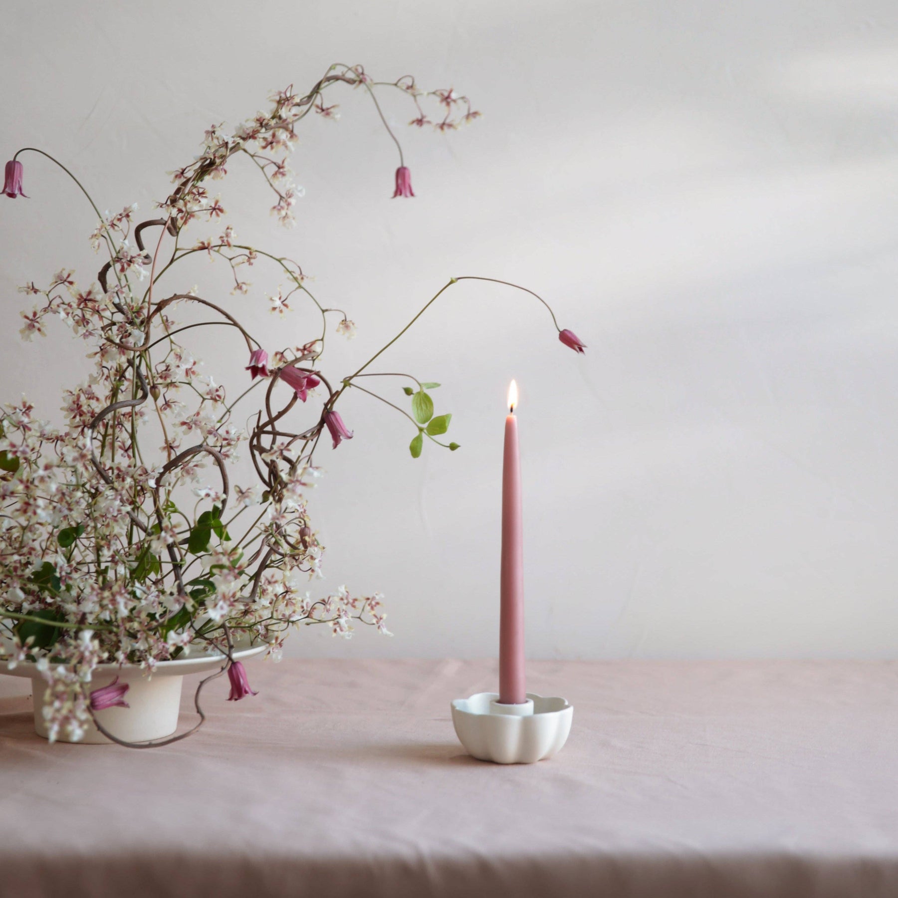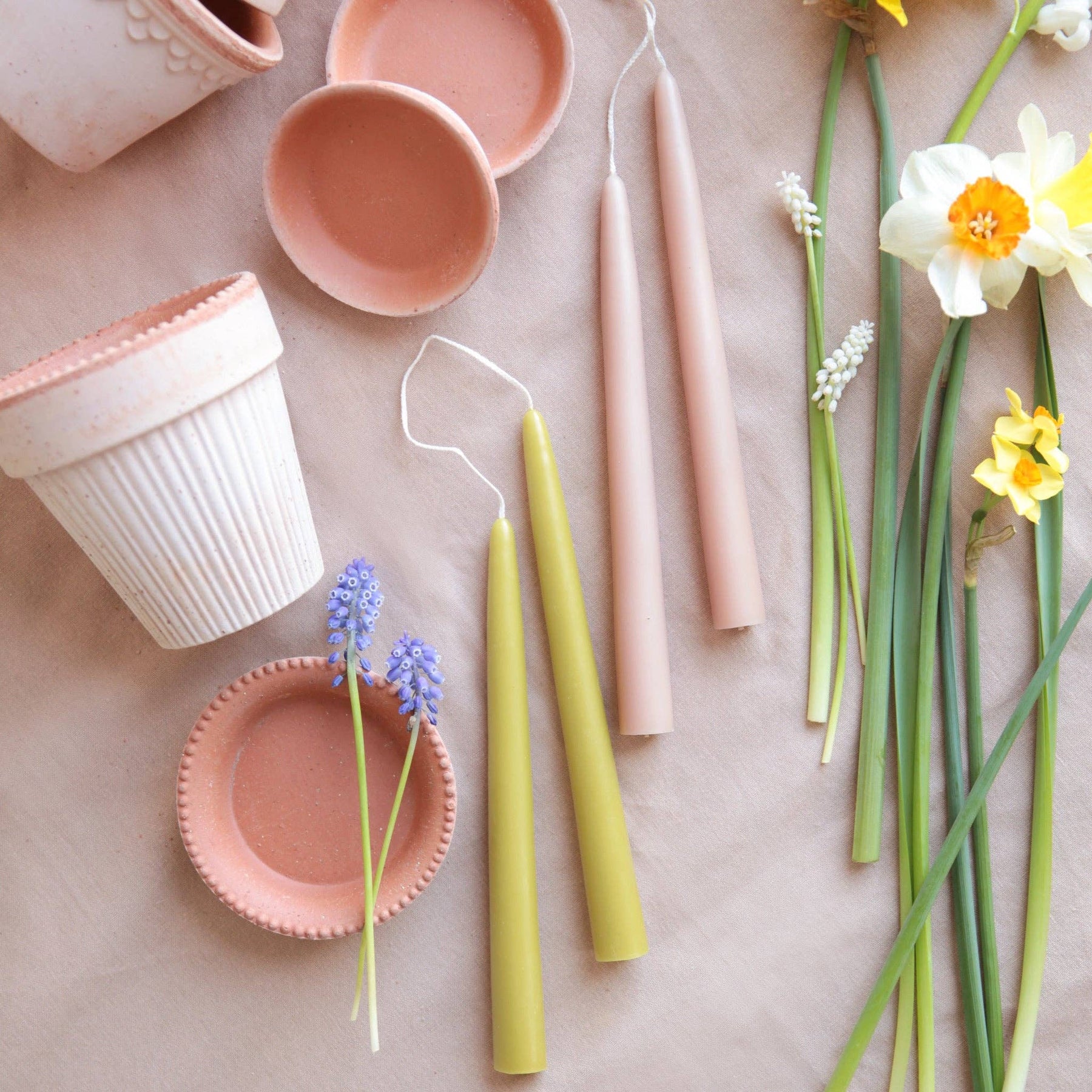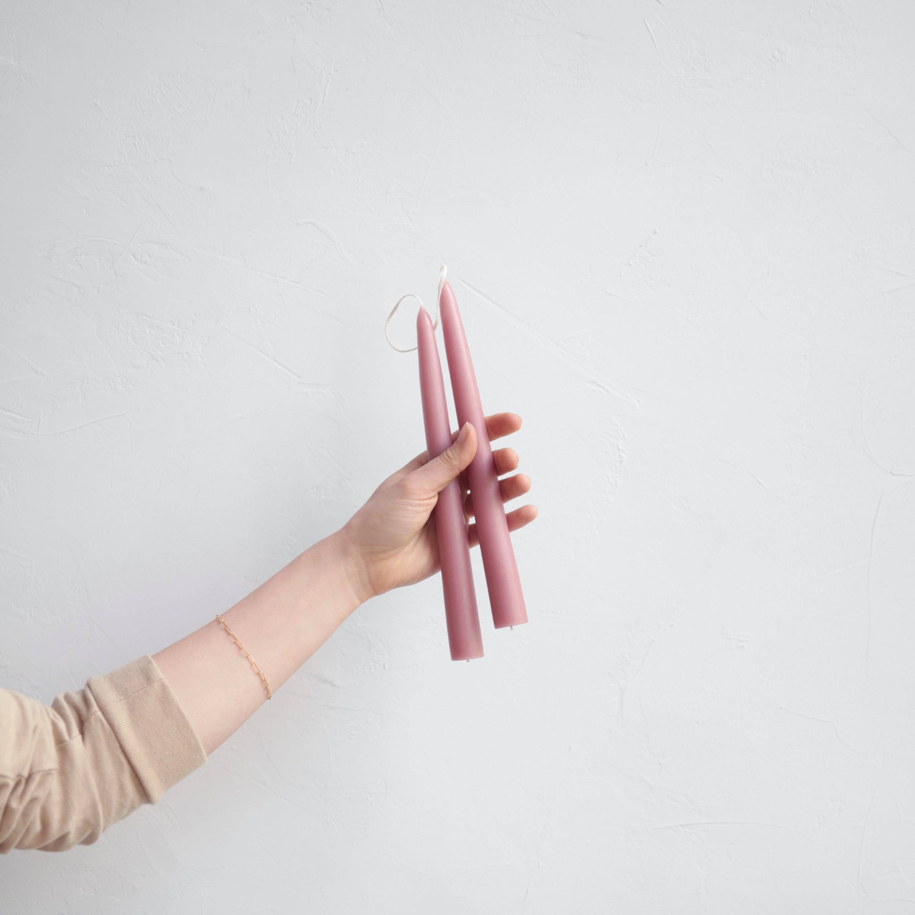 Our colors are inspired by nature's natural hues and meant to be burned as a daily ritual or to commemorate a special occasion. Each candle is dipped 35 times for a superior depth of color, and pairs are joined by a braided cotton wick for the cleanest burn. Crafted of a high grade paraffin, our tapers are made in the United States and are designed to burn drip-free at a rate of approximately 1 hour per inch. Our dipped taper candles have a 7/8” standard base. Please note due to the dipped nature of our candles, there may be a slight variance in the width of the base. To accommodate such variances, we suggest using our Copper Candle Sharpener and Candle Helper. Subtle variations in wax depth and color opacity may occur. Pro tip: To avoid dripping burn away from all drafts and trim your wicks!