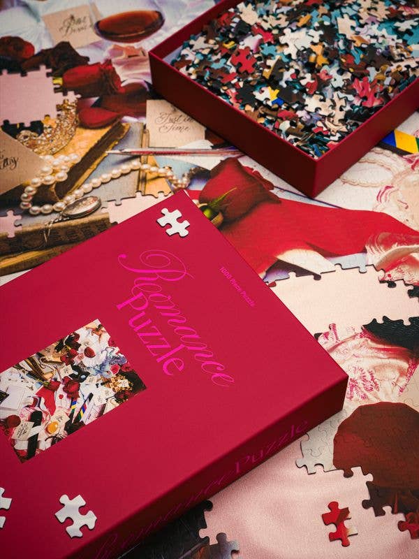 Roses are red, puzzles are too, A love story in 1000 pieces... Romance Puzzle is a 1000-piece celebration of love in all its tropes. From “slow burn” to “only one bed,” this tableau brims with nods to the greatest hits of romance novels — roses, pearls, mixtapes, and candlelight. Playful, passionate, and a little over-the-top, it’s a puzzle made for hopeless (and hopeful) romantics alike. 1000-piece jigsaw puzzle Completed puzzle is 19.25 x 26.6 inches Box is 8 x 10 x 1.8 inches Thick stock and high-quality art paper Not suitable for children Board is 100% recycled paper Valentine's - Valentine's gift - Faire Market - New 2026