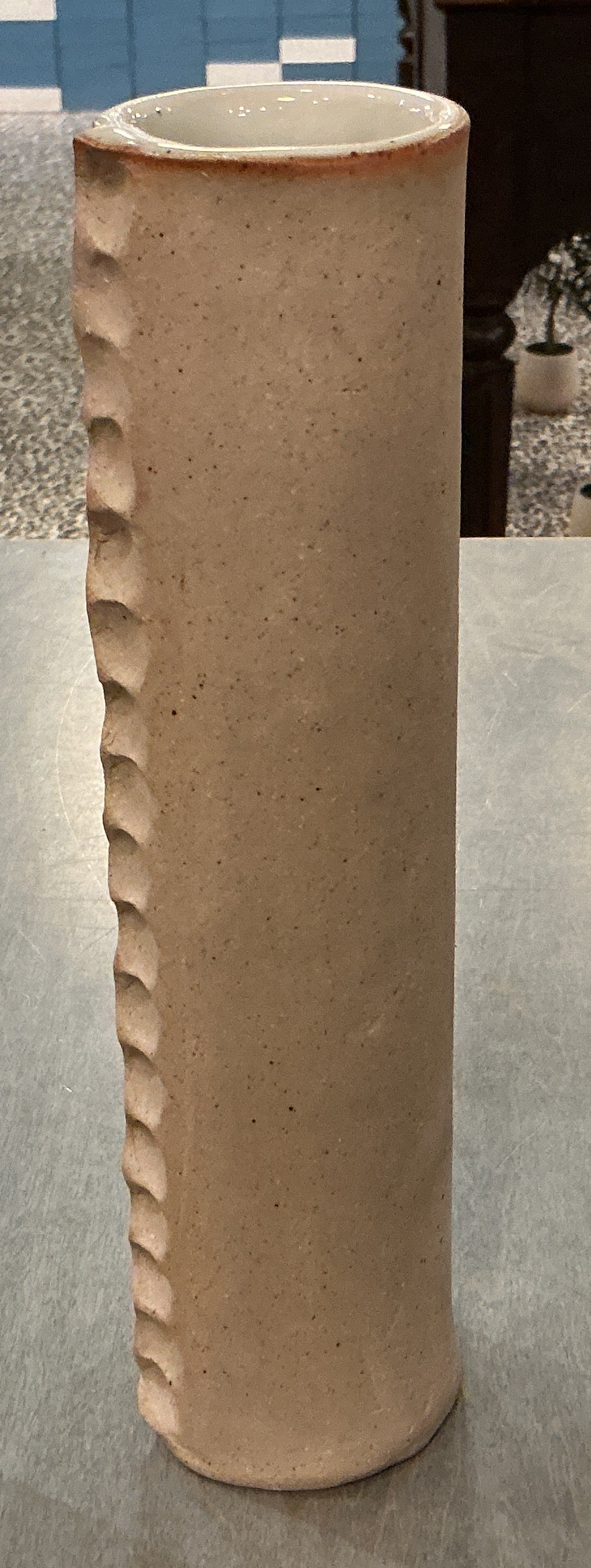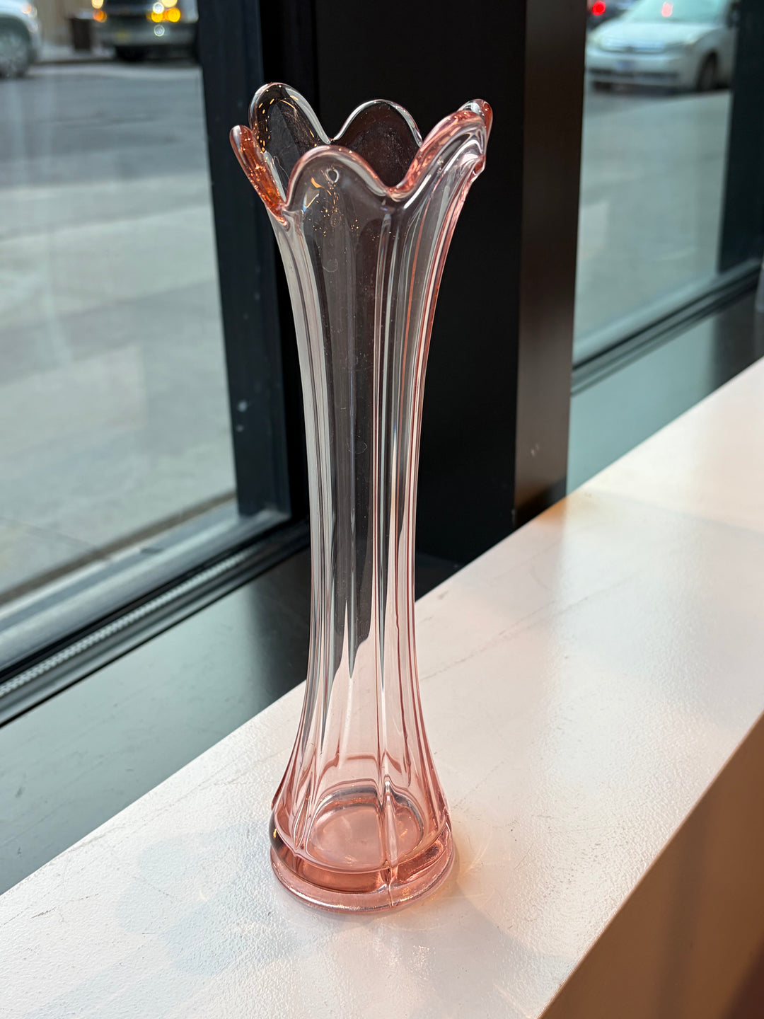 a decorative container, typically made of glass or china or stoneware and used as a vessel for cut flowers.