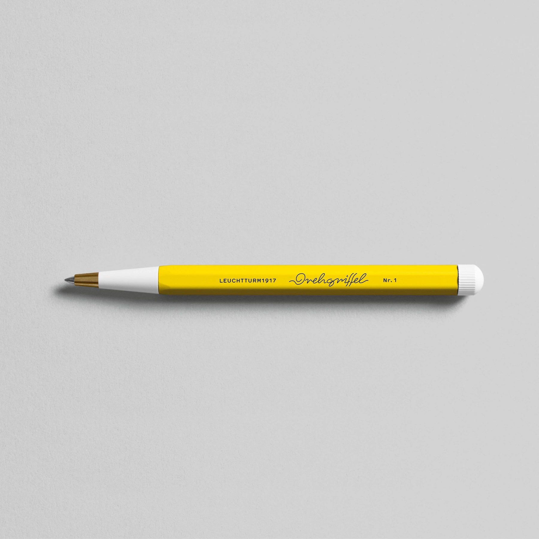 The twist mechanism and refill of this multiple design award-winning writing instrument are made in Germany. The Drehgriffel Nr. 1 is precisionmilled in aluminium and brass, then varnished and sealed. It has a spring-loaded twist mechanism. The Drehgriffel Nr. 1 is available as a ballpoint pen with royal blue ink. Details: • Made from precision-milled aluminium and brass • Ceramic ball bearing • Stroke size 0,5 mm • Black ink