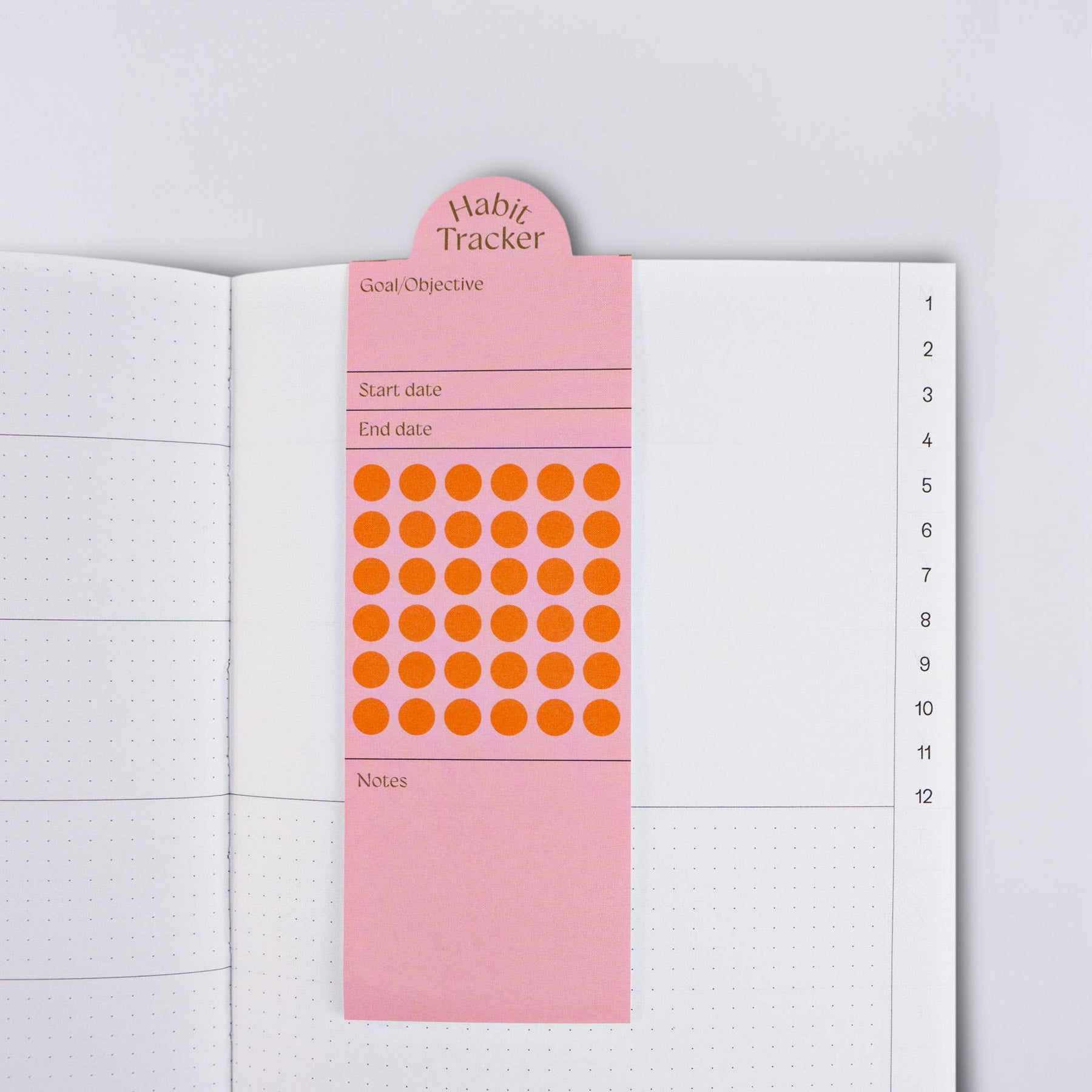 These bookmarks fold over your page so you can move them around in a notebook or planner. Easily keep track of any new habit you're trying to make stick. Sold as a set of 12. This is a set of 12 habit tracker bookmarks. Tick off every day to help create good habits. These measure 5.5 x 20 cms, and have a tab so you can easily find them in your book. Made in the UK using responsibly-sourced paper, packed in a biodegradable bag.