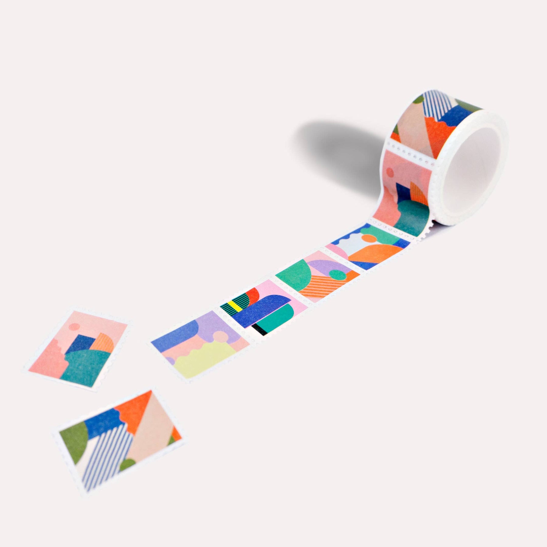 Is this the coolest washi tape ever? We think so. It comes packed in a cardboard box (plastic free!) It's 25mm wide and 5 metres long. It's perforated so each piece can be pulled off, just like real stamps! Keywords: mother's day gifts, summer, spring, graduation, grad, mom, mothers day
