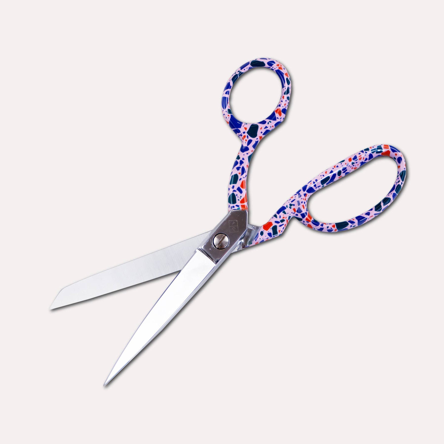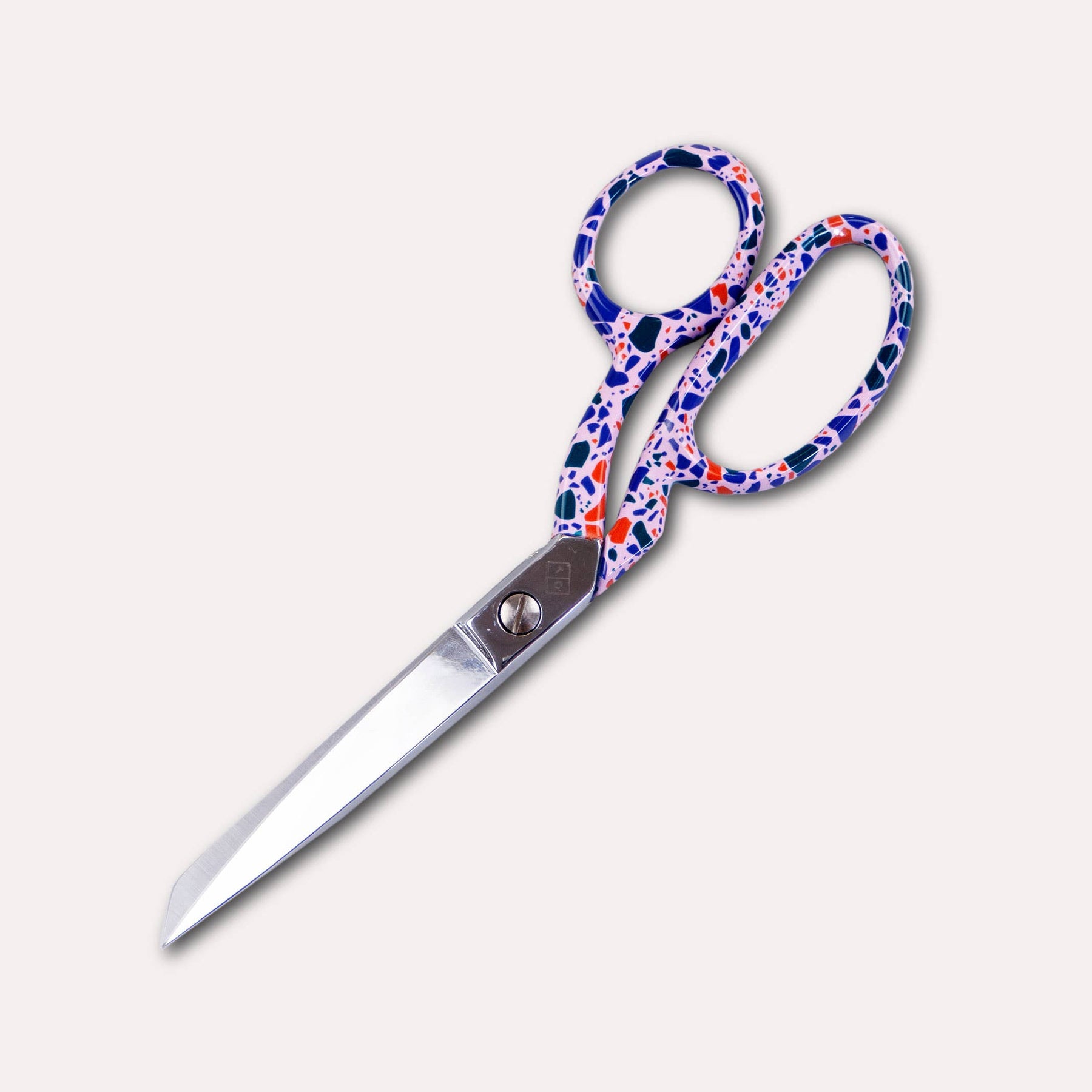 These stunning scissors are manufactured in a family-owned factory in Italy and are hand assembled and adjusted by craftsmen with over 25 years experience. They measure 21cms long and are proper tailors scissors, so make a perfect gift for the fashion lover or crafty person in your life. They're perfect for paper too! These beauties feature our classic terrazzo print, and come in a beautiful matching box, perfect for gifting. These scissors are made from hot dropped forged high carbon steel and are double plated (chrome over nickel, for extra resistance to wear and rust). Keywords: valentine gifts love valentines valentine's heart the completist