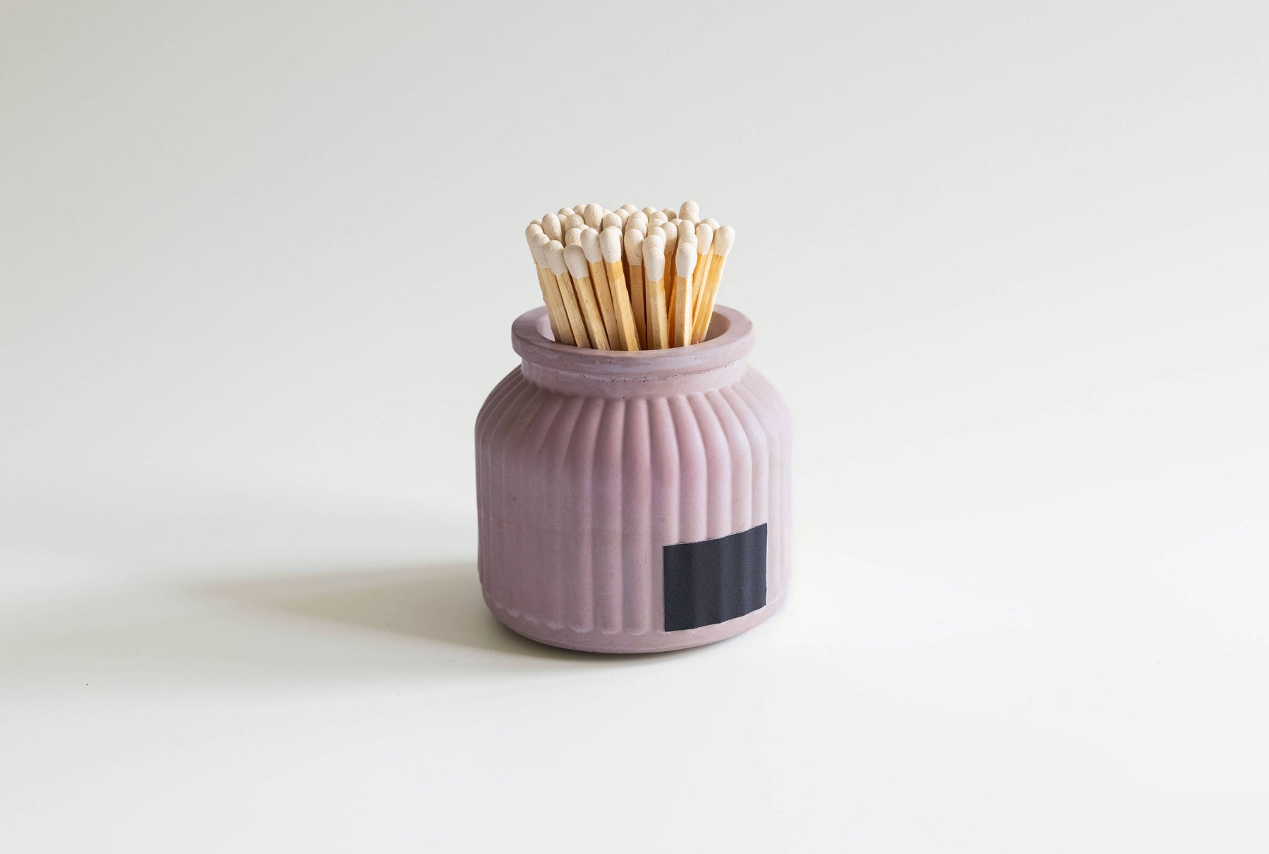 The Apothecary Candle Match Holder – Long Matches The Apothecary is a sturdy match holder designed to elevate your candle ritual. It features extra-long 3" matches—perfect for lighting multiple-wick candles with ease. Practical, beautiful, and built to last. With its western-inspired design and durable hand-poured concrete form, this piece adds both style and utility to any shelf, tray, or tabletop. Includes 3" candle matches Handmade in small batches in Nashville, Tennessee Natural color variations, textures, and air bubbles are part of the charm—no two are exactly alike