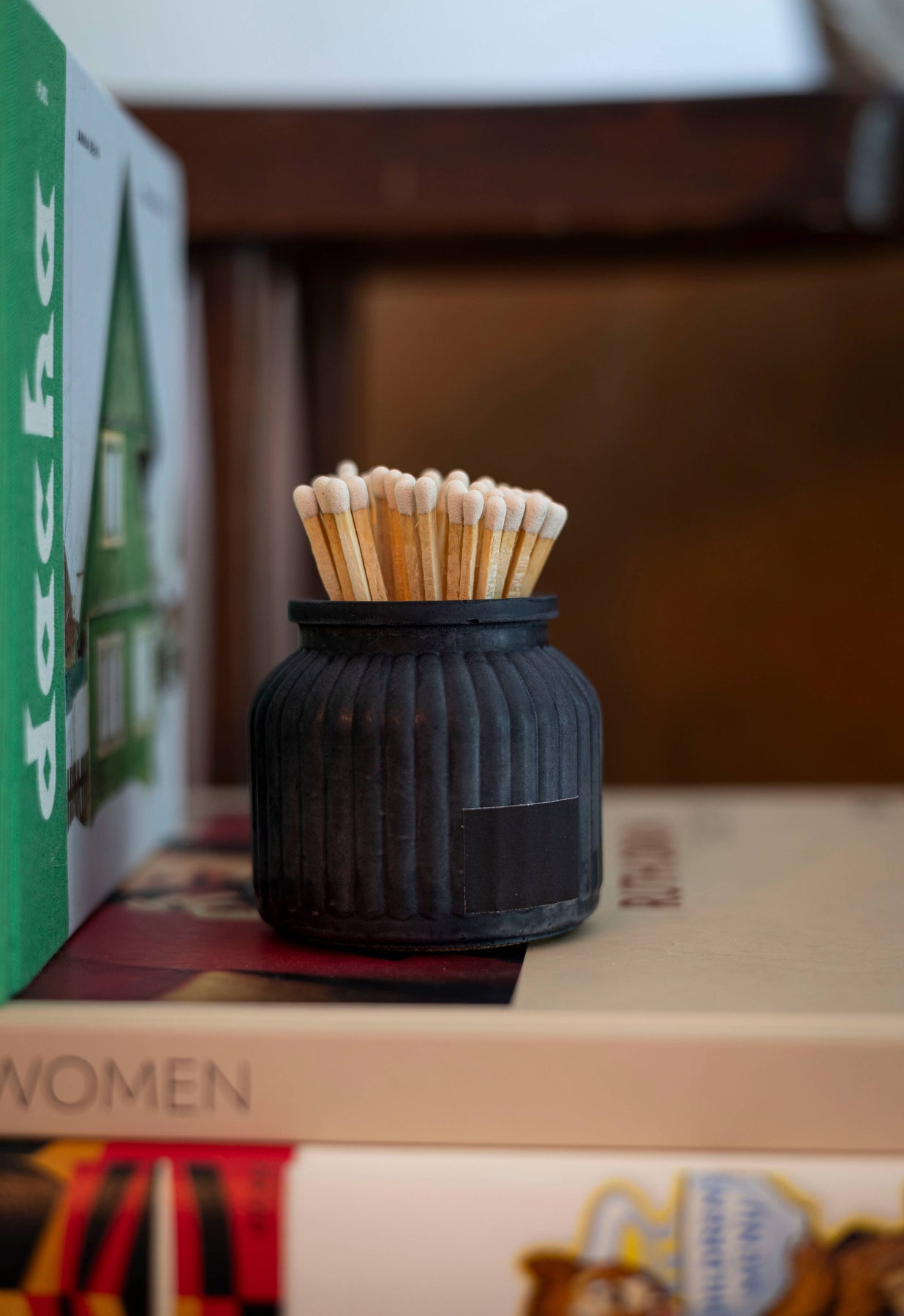 The Apothecary Candle Match Holder – Long Matches The Apothecary is a sturdy match holder designed to elevate your candle ritual. It features extra-long 3" matches—perfect for lighting multiple-wick candles with ease. Practical, beautiful, and built to last. With its western-inspired design and durable hand-poured concrete form, this piece adds both style and utility to any shelf, tray, or tabletop. Includes 3" candle matches Handmade in small batches in Nashville, Tennessee Natural color variations, textures, and air bubbles are part of the charm—no two are exactly alike