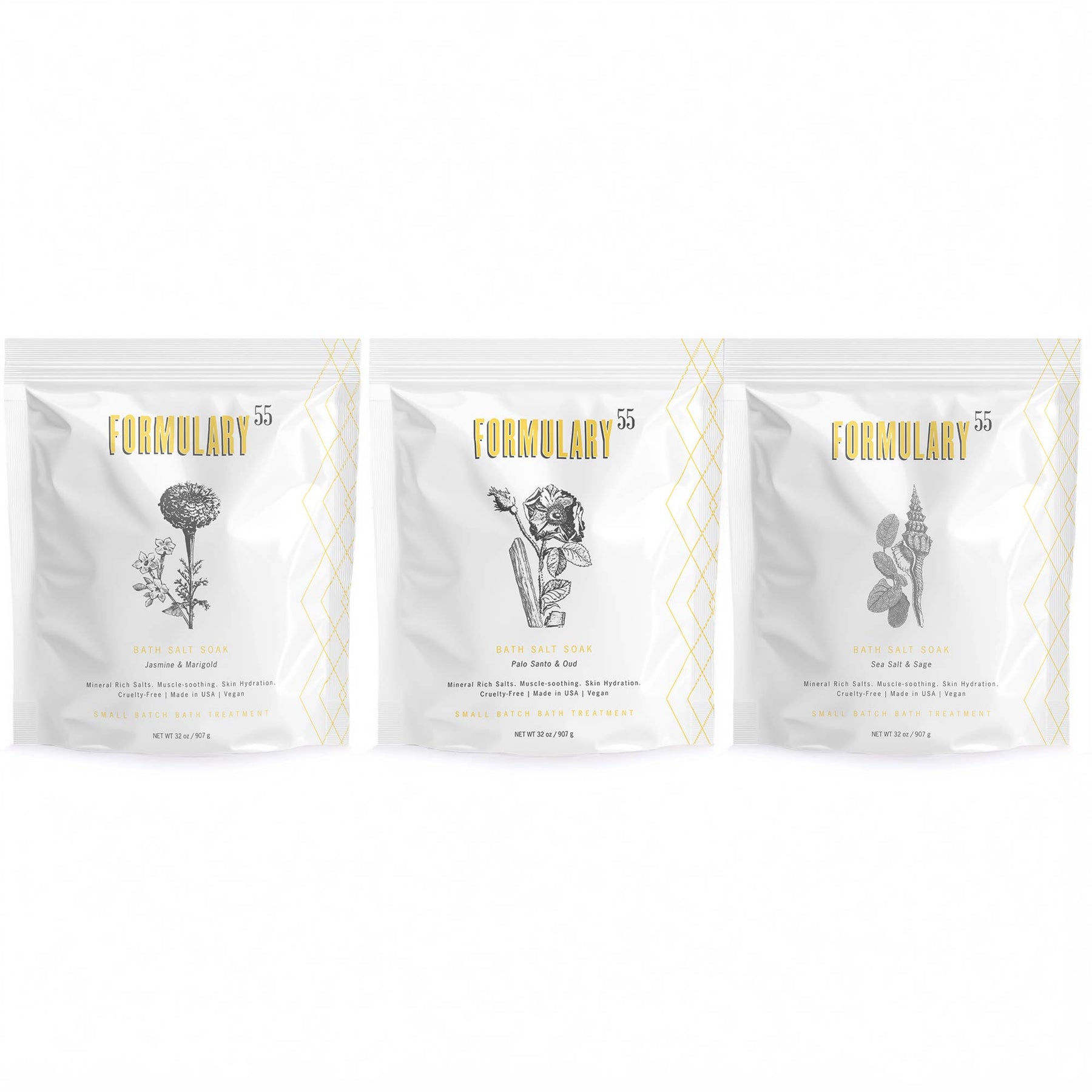 Mineral Rich Salts. Muscle-soothing. Skin Hydration. Our new bath salt soak is a holistic approach to unwind & take care of yourself. You get the muscle-soothing & skin softening benefits of Epsom salt, the calming effects & promoting better sleep with magnesium, and the mineral-rich nourishment of pink Himalayan salt that can help with skin hydration. Enjoy feeling soft & moisturized with our best-selling, unisex Palo Santo & Oud phthalate free fragrance oil, inspired by the Bursera graveolens wild tree, believed to clear negative energy. Warm & woody with notes of raw palo santo, hints of sandalwood, fragrant oud & touch of rose & peppercorn. Large 32oz resealable bag in our signature modern botanical packaging that sits on shelf beautifully next to our treatments, body oils in the same fragrances to use together, cremes & soaps for a full compelling assortment. Ingredients: Magnesium Sulfate (Epsom Salt), Magnesium Flakes, Pink Himalayan Salt, Clean Phthalate Free Fragrance
